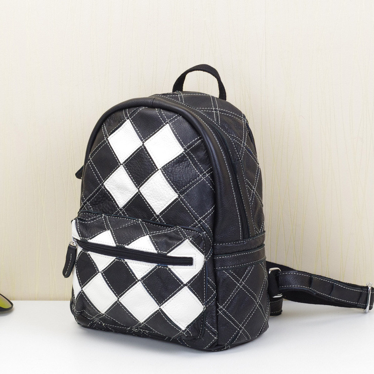 One Generation Of Leather Handbags, New First Layer Cowhide Handmade Contrast Color Backpack Ladies Backpack