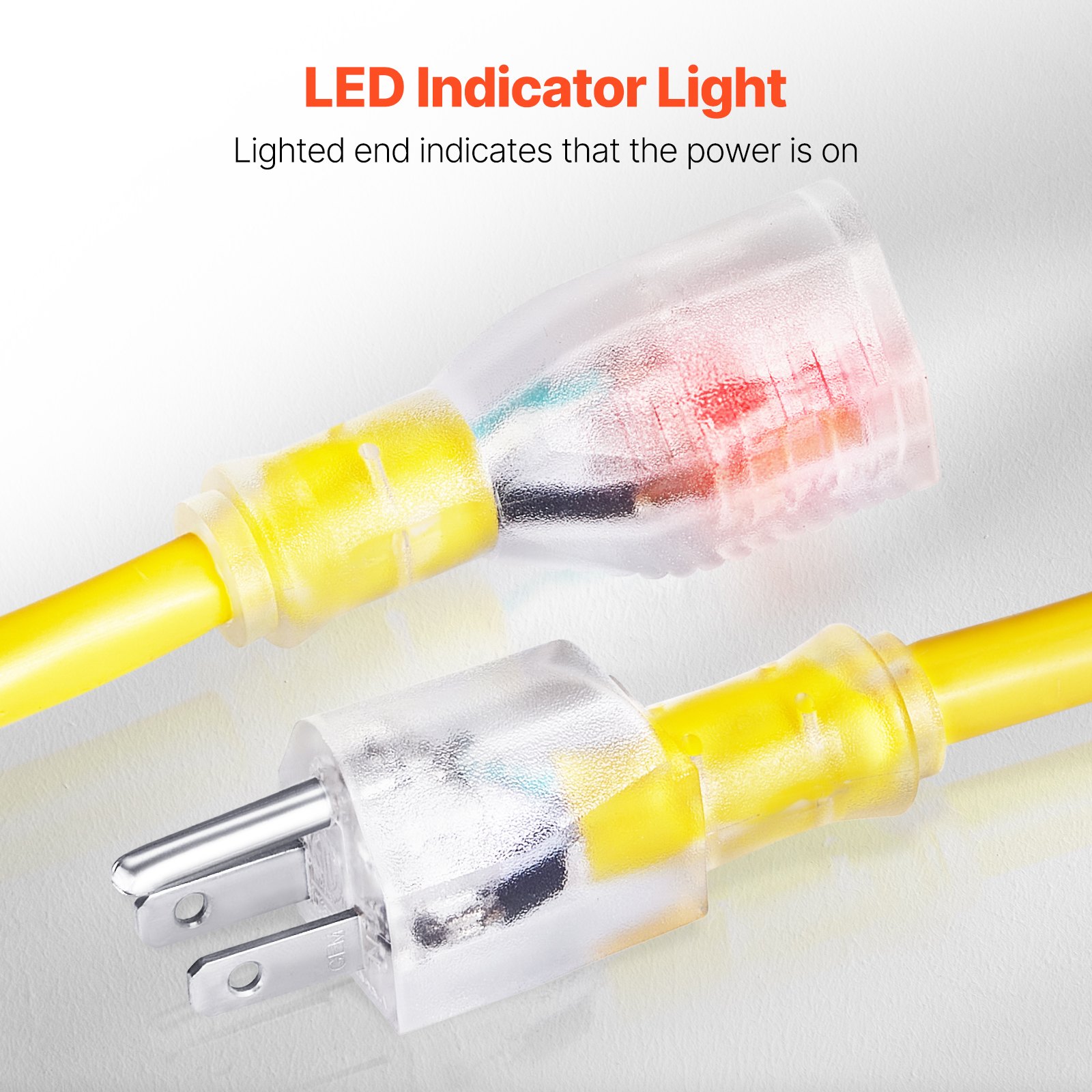 Lighted End: Our heavy-duty extension cord features an LED indicator at one end that illuminates when powered, making it easy to check the power status in low-light conditions and enhancing the user experience.