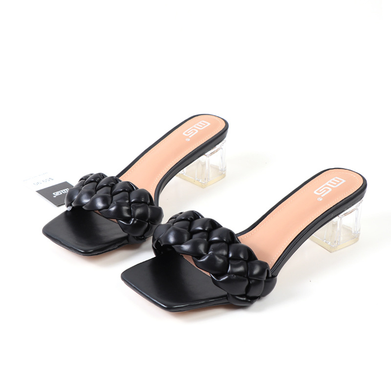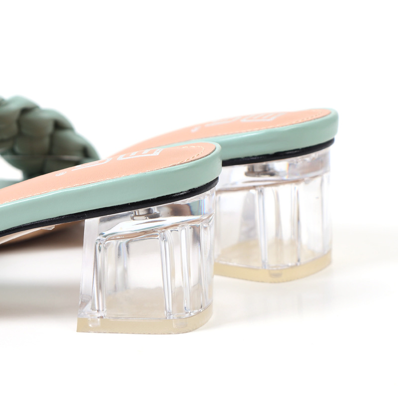 One-Line Plus Size Mid-Heel Solid Color Sandals
