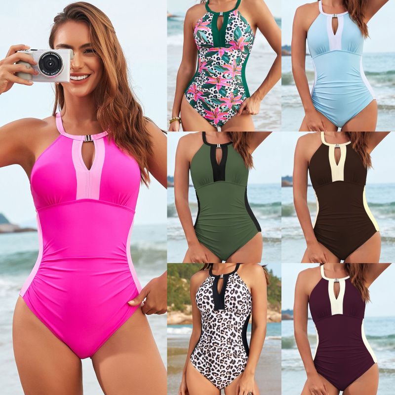One-piece Swimsuit Multicolor Patchwork Figure-flattering With Ruching