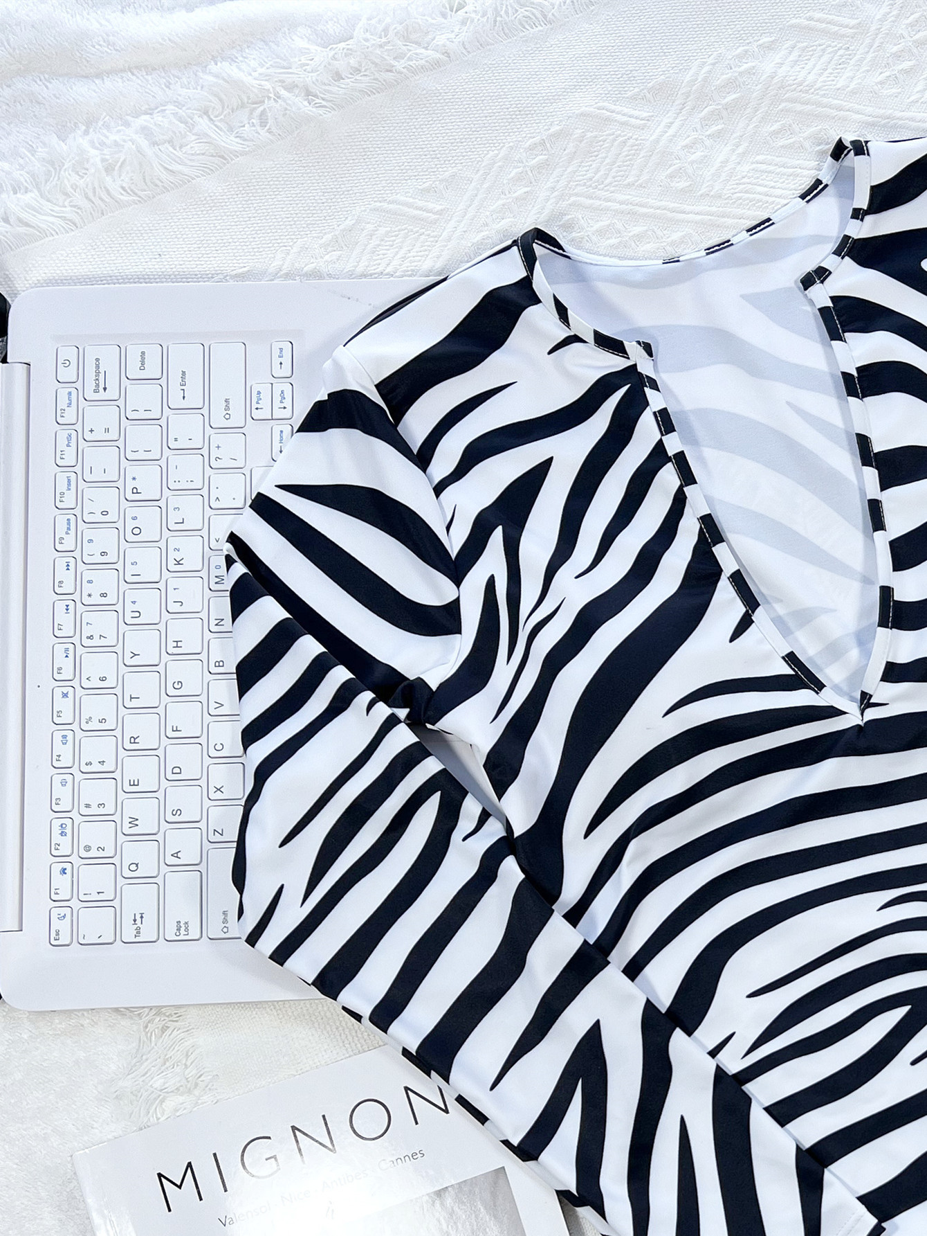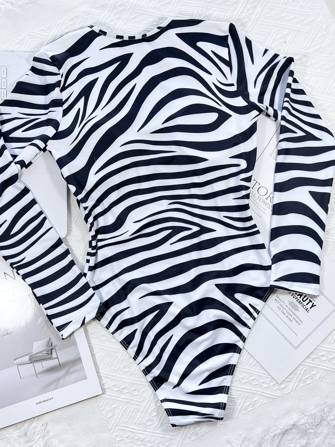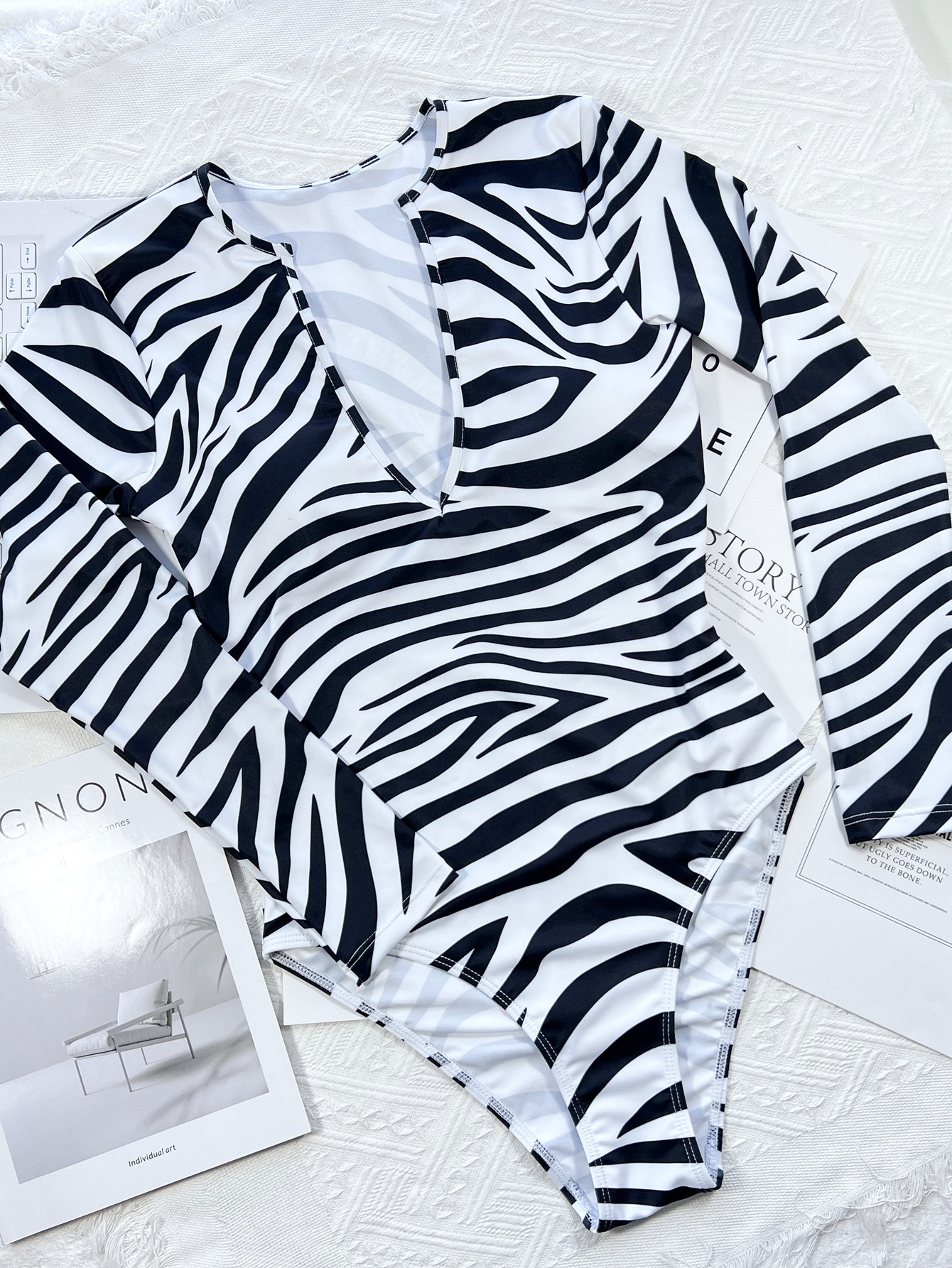 One-piece Swimsuit Women's Deep V Zebra Pattern Long Sleeve One-piece Bikini