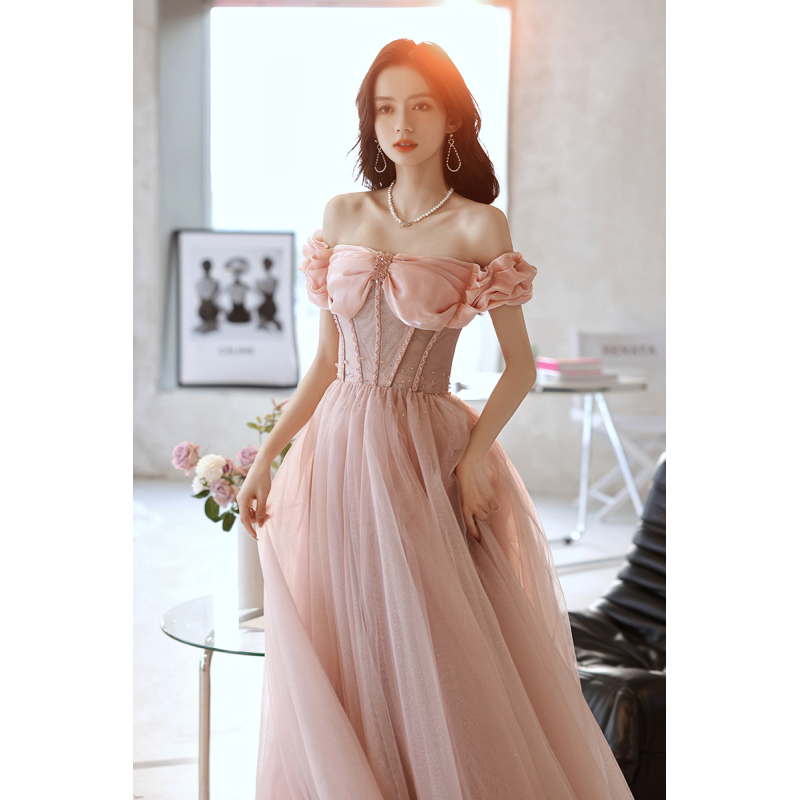 One Shoulder Evening Dress Pink Noble Dress