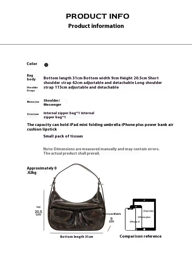 Shoulder strap: Short shoulder strap 62cm adjustable and detachable Long shoulder strap 115cm adjustable and detachable