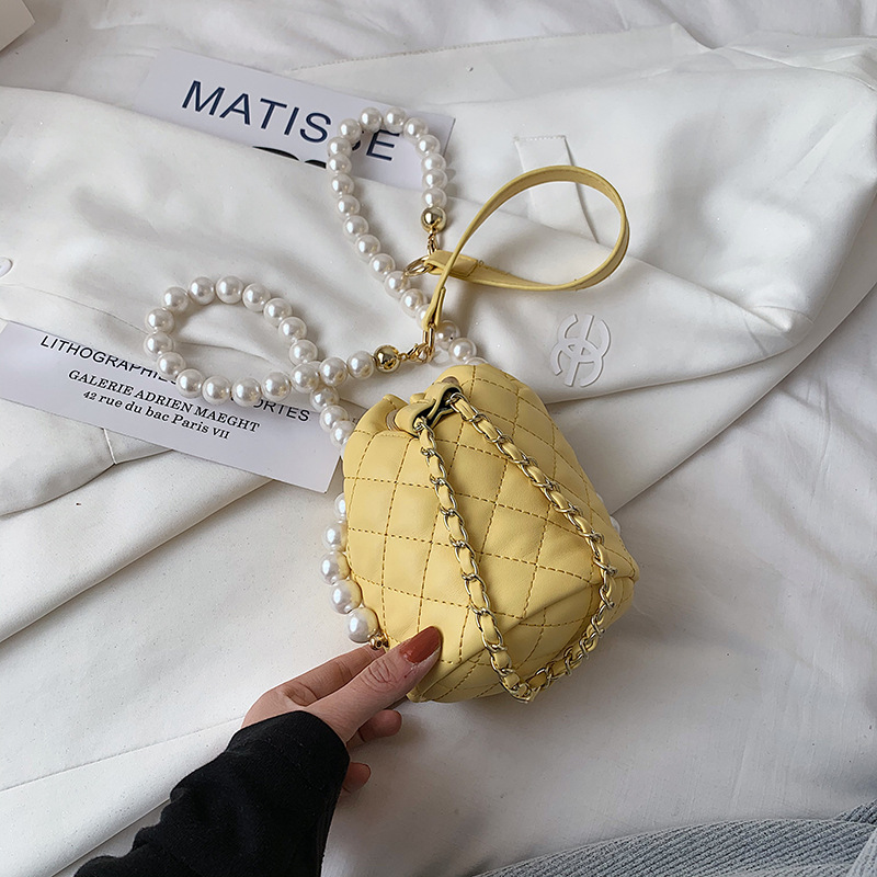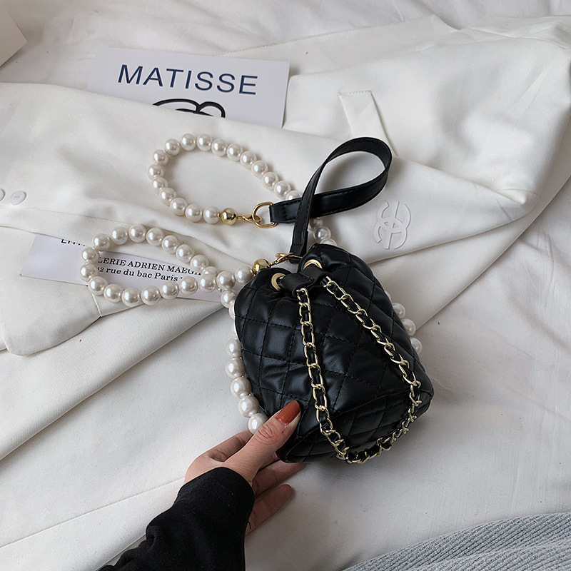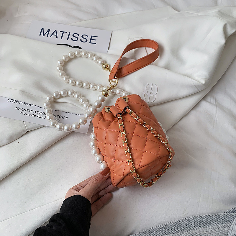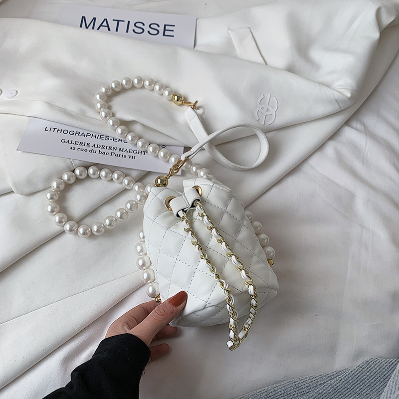 One-shoulder Messenger Bag Mini Pearl Chain Rhomboid Bucket