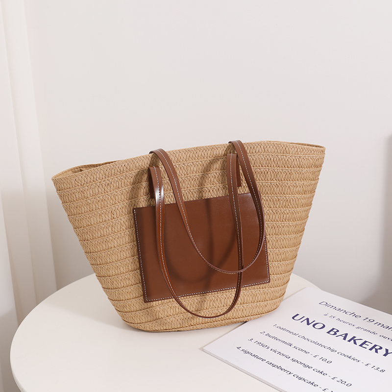 One Shoulder Portable Large Capacity Tote Woven Bag
