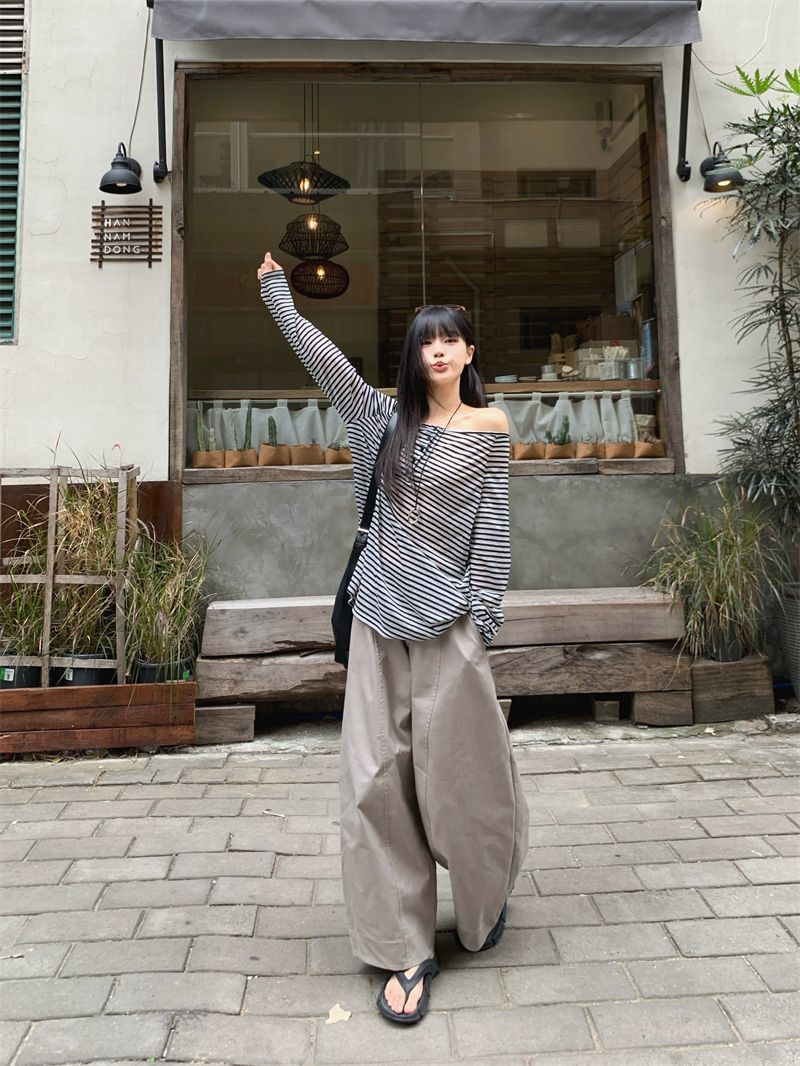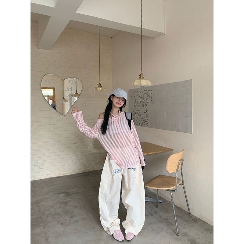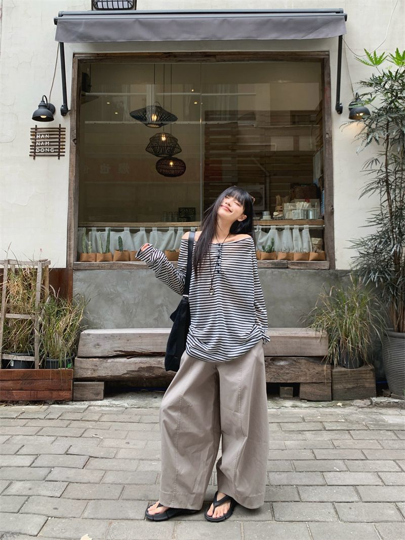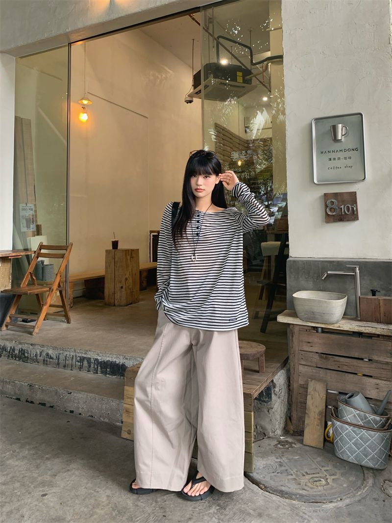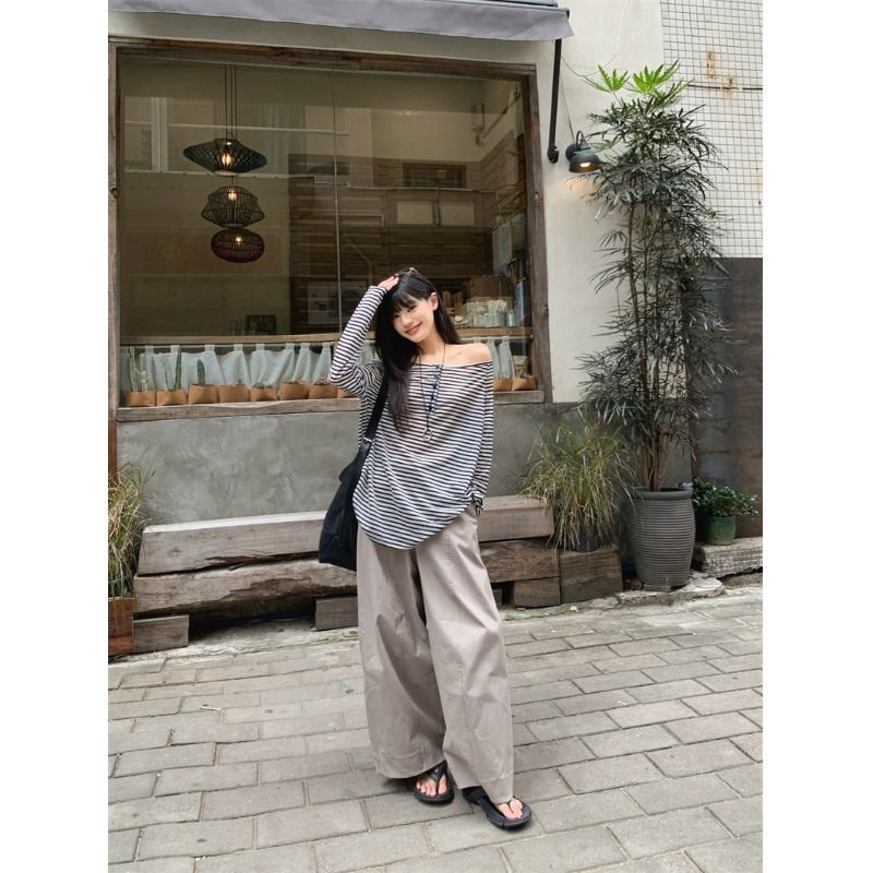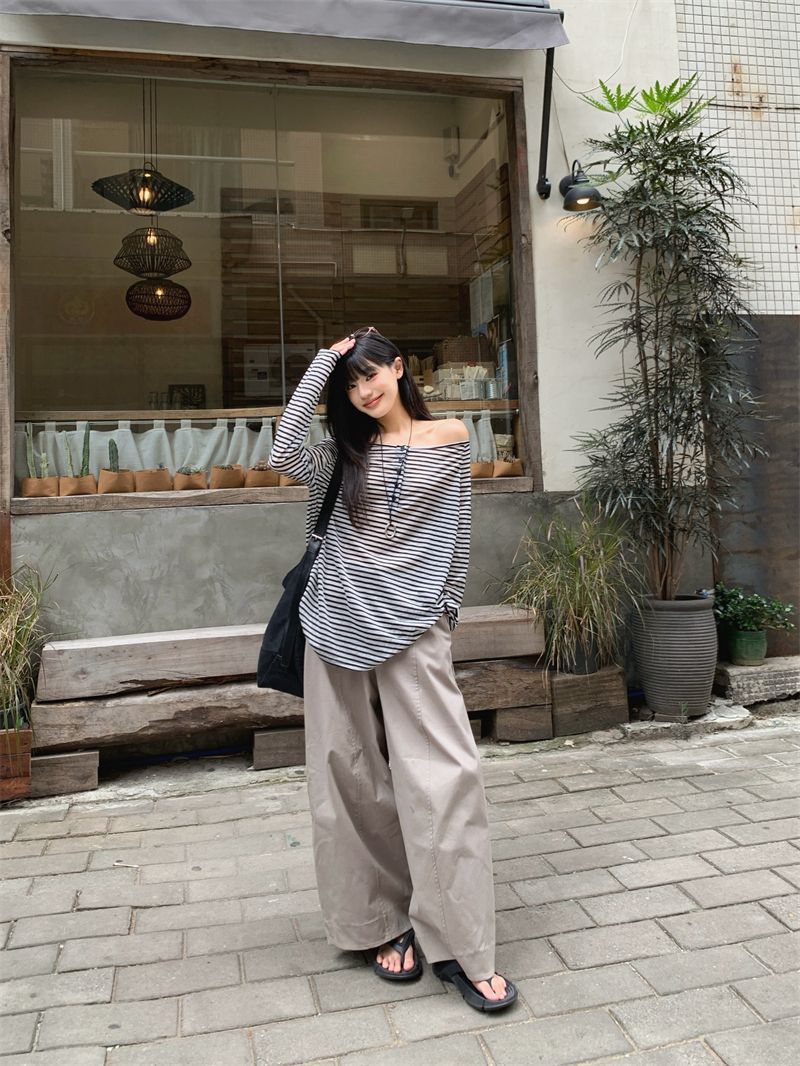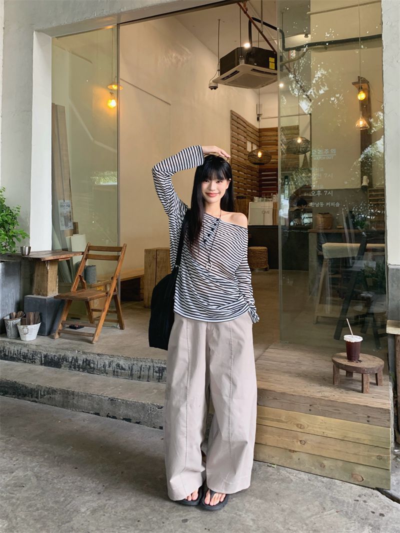 One-shoulder Thin Striped Slimming Base Shirt T-shirt For Women