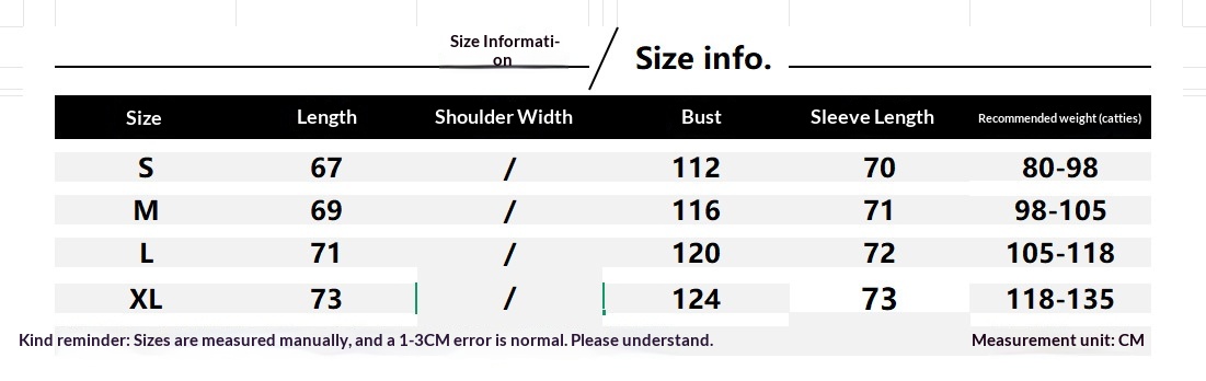 Note: 1. Asian sizes are 1 to 2 sizes smaller than European and American people. Choose the larger size if your size between two sizes. Please allow 2-3cm differences due to manual measurement. 2. Please check the size chart carefully before you buy the item, if you don't know how to choose size, please contact our customer service. 3.As you know, the different computers display colors differently, the color of the actual item may vary slightly from the following images.