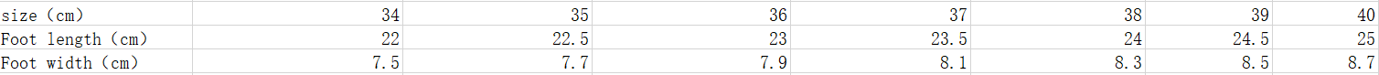 Size: 34,35,36,37,38,39
