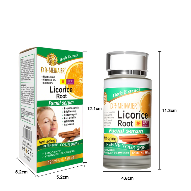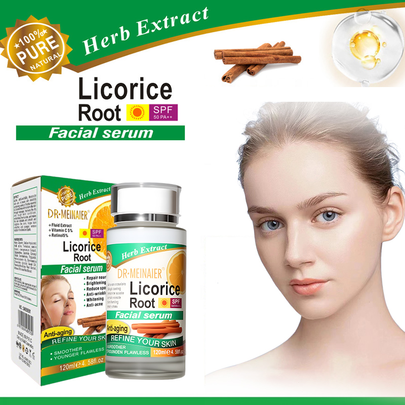 This multi-functional facial serum combines the natural power of licorice root extract with vitamin C and retinol to deliver visible skin transformation. Formulated for daily use, it targets fine lines, uneven tone, and dullness while offering broad-spectrum SPF 50 PA++ sun protection. The lightweight, fast-absorbing formula leaves skin smoother, brighter, and more youthful-looking — perfect for those seeking a comprehensive anti-aging solution in one step.