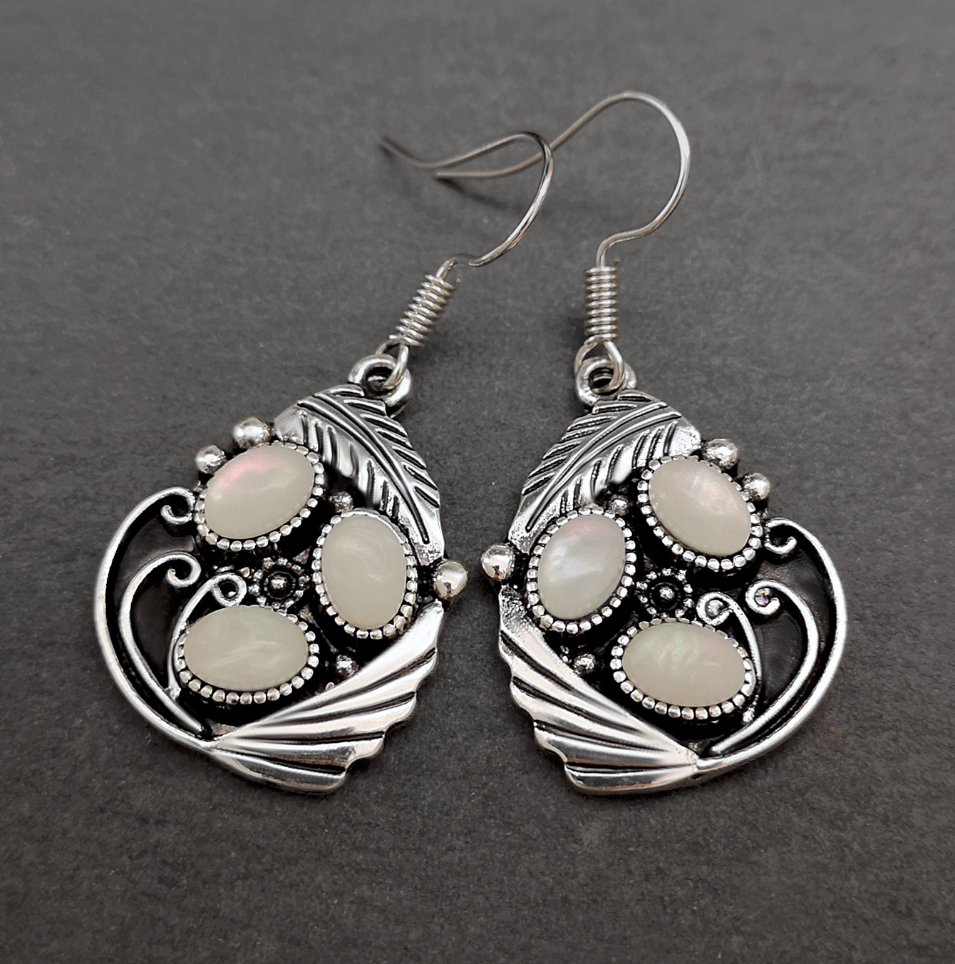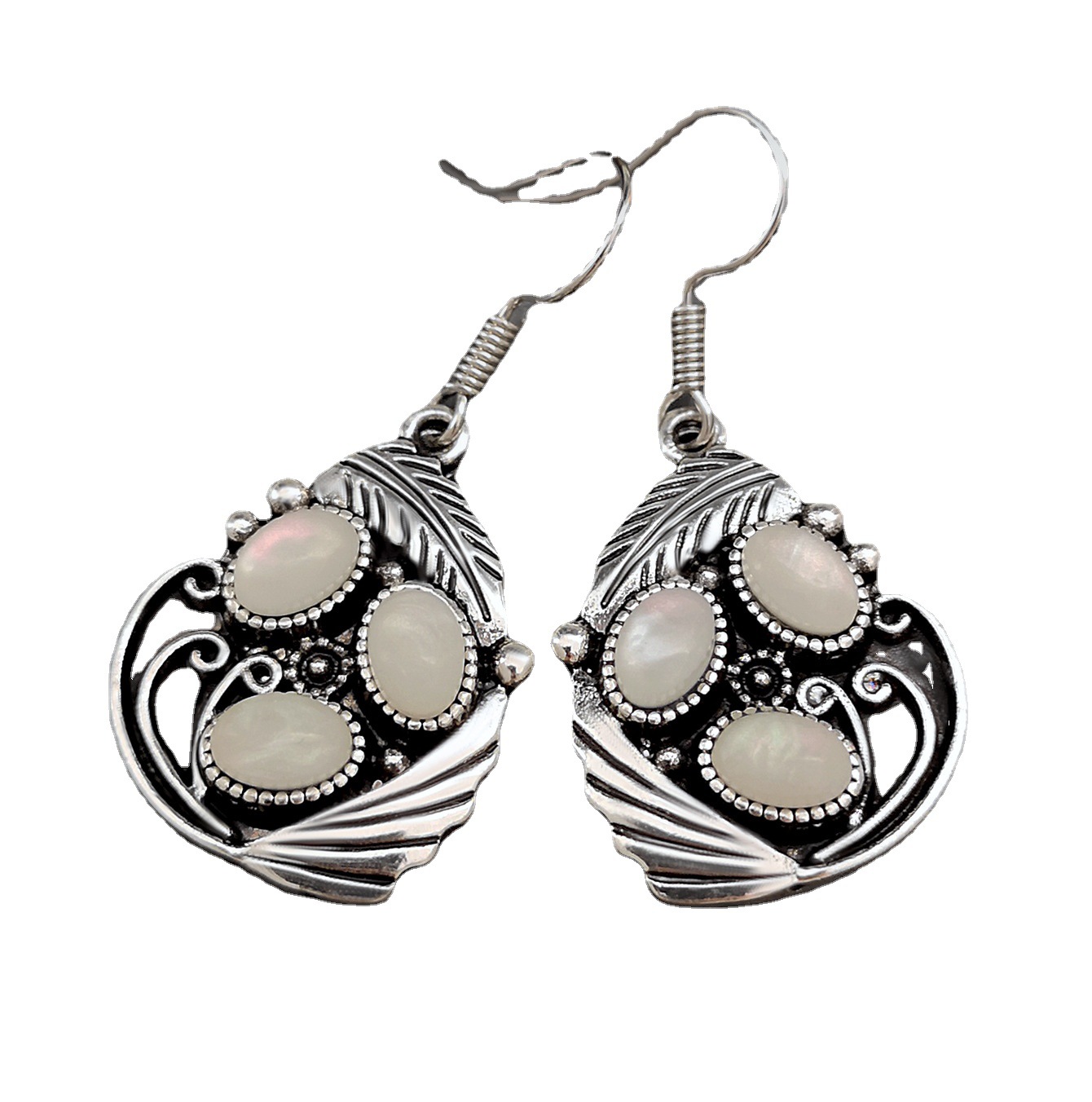 Opal Creative Leaf Feather And Shell Moonstone Earrings