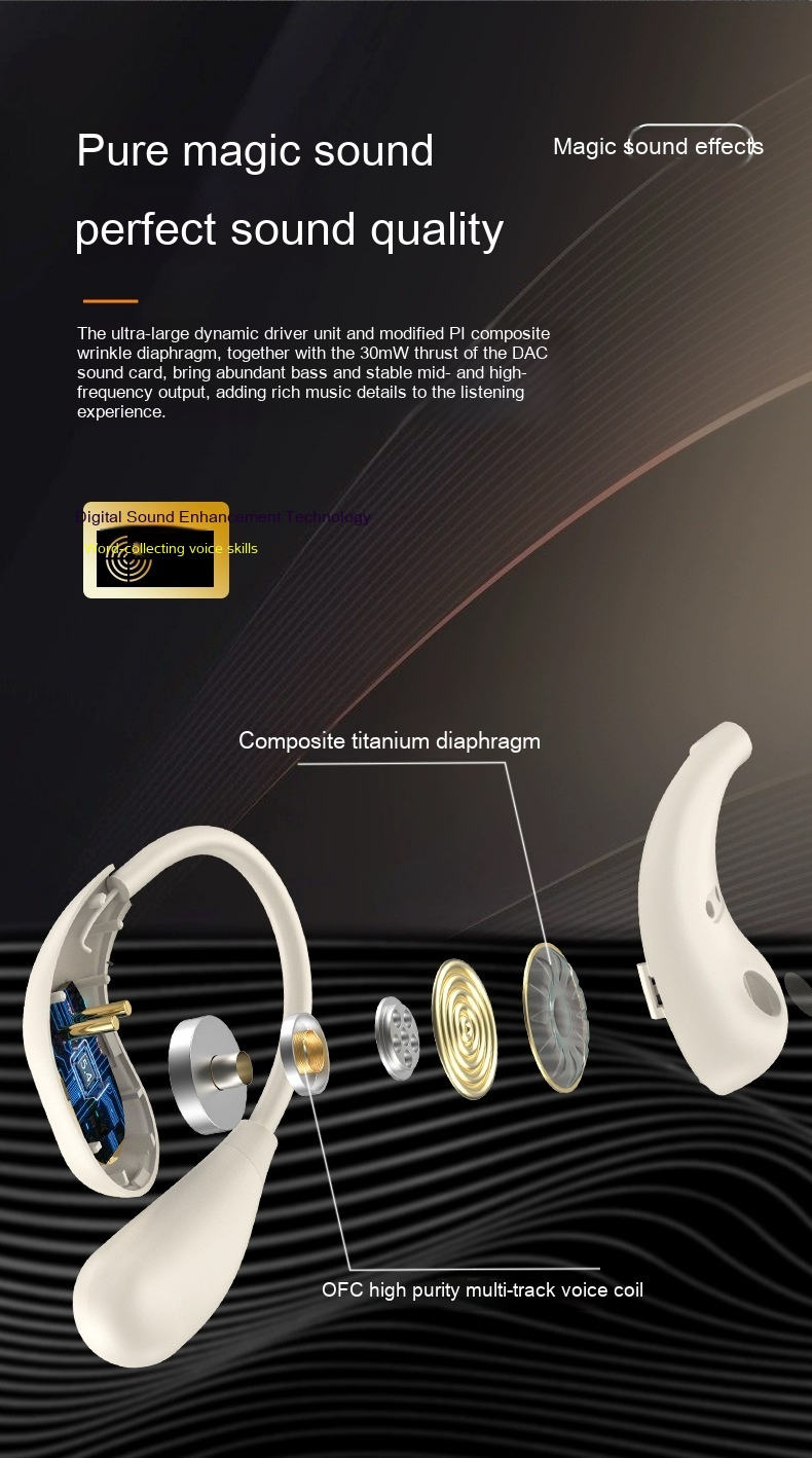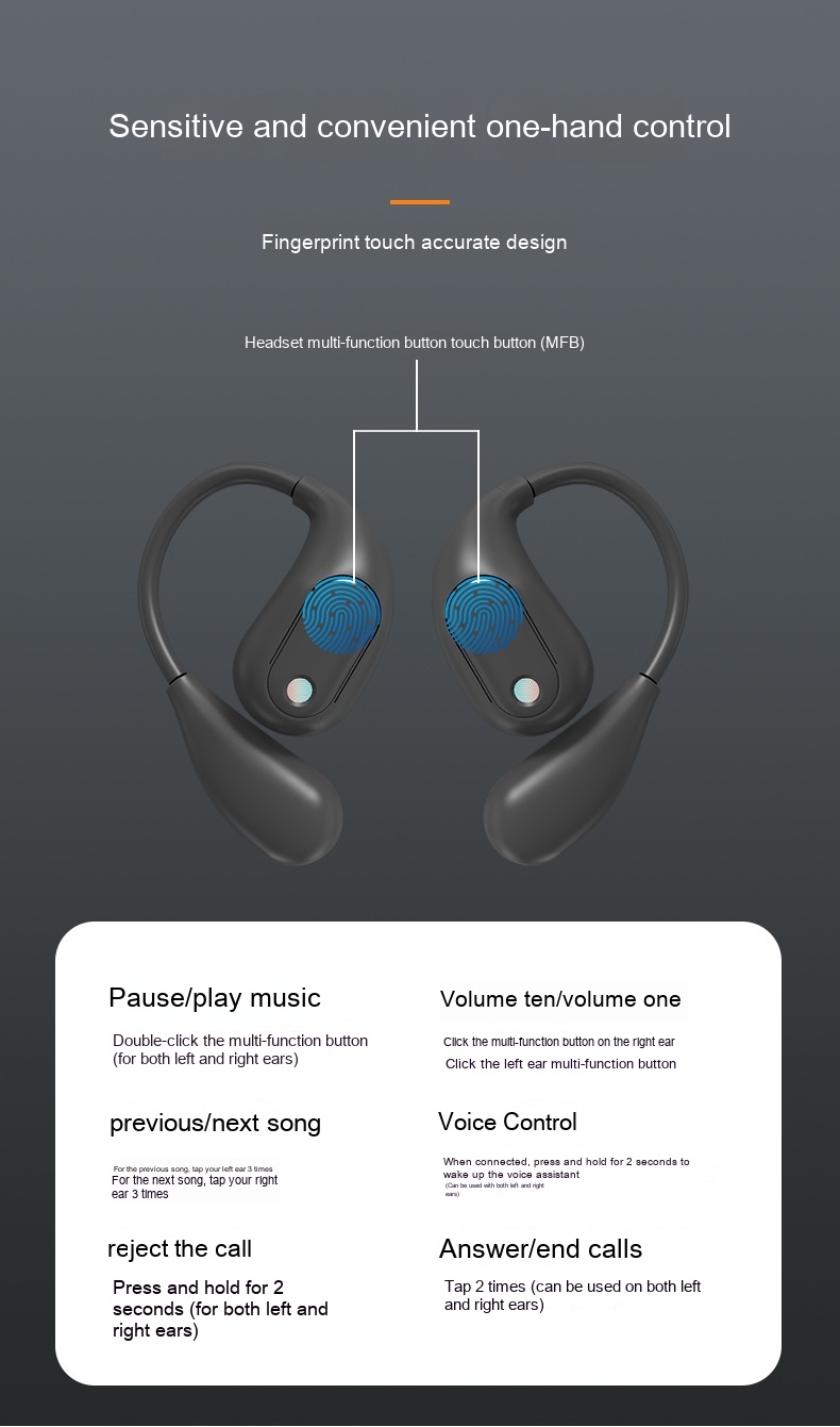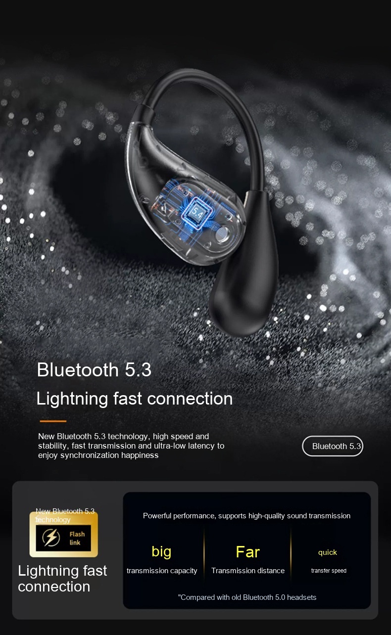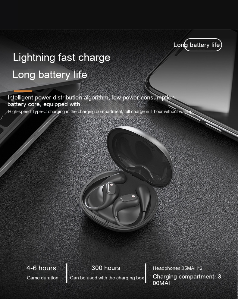 Functions: Waterproof, bone conduction, ultra-long life battery battery, call function, voice control, music support, e-sports low latency