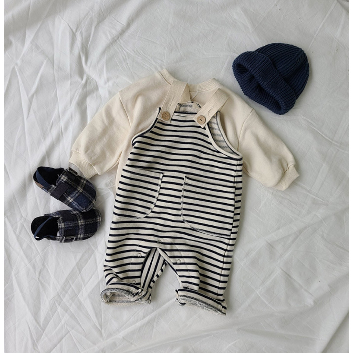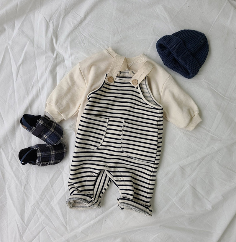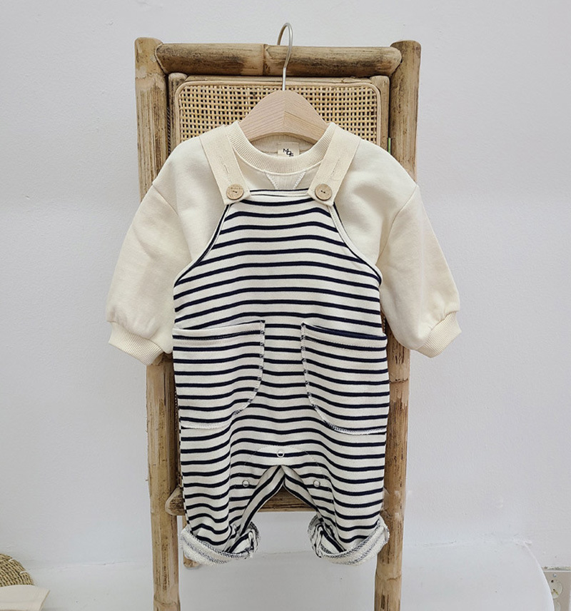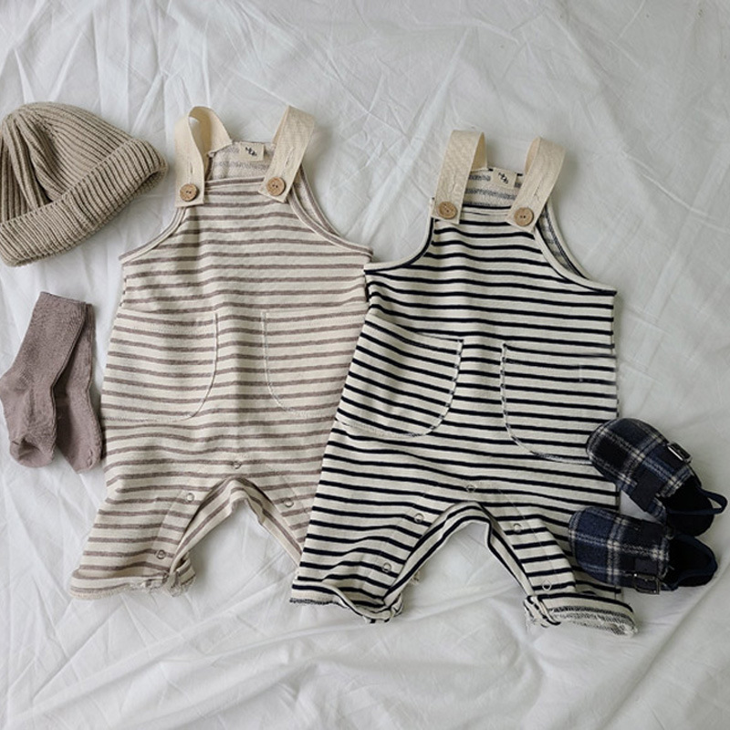 Open File Bib Pants For Men And Women, All-Match Fashion Casual Striped Jumpsuit