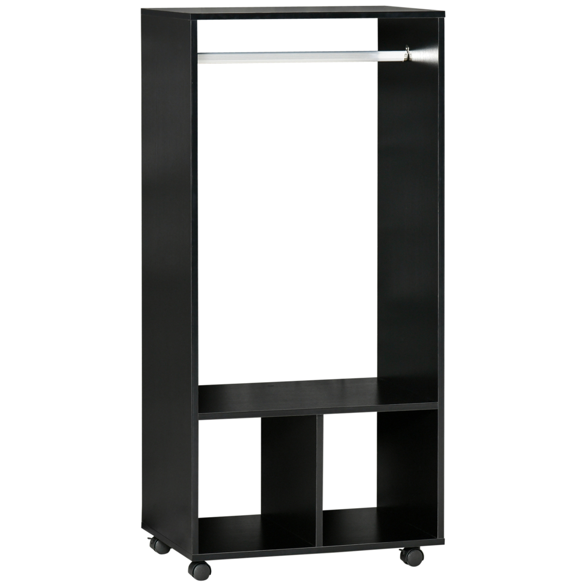 Grabbing your outfit-of-the-day in the mornings just got easier - thanks to this open wardrobe from . The small wardrobe is made from particle board for durability - working with the aluminium hanging rail to fully support and hang clothes in place - no collapsing with garments creasing. Also features two open shelves for keeping folded items and shoes stored. An open design, helps to keep clothing smelling as fresh as possible. Finished with four wheels to move around easily.