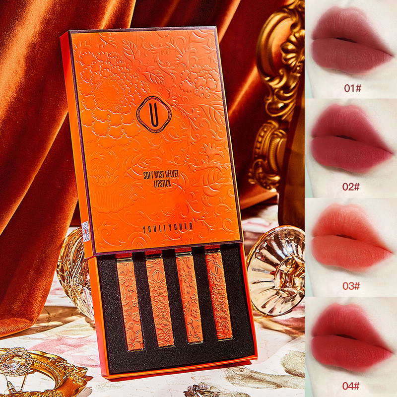 Color: 4 lipstick sets, 01 # naked bean paste, 02 # naked almond, 03 # naked dirty orange, 04 # naked shaddock red