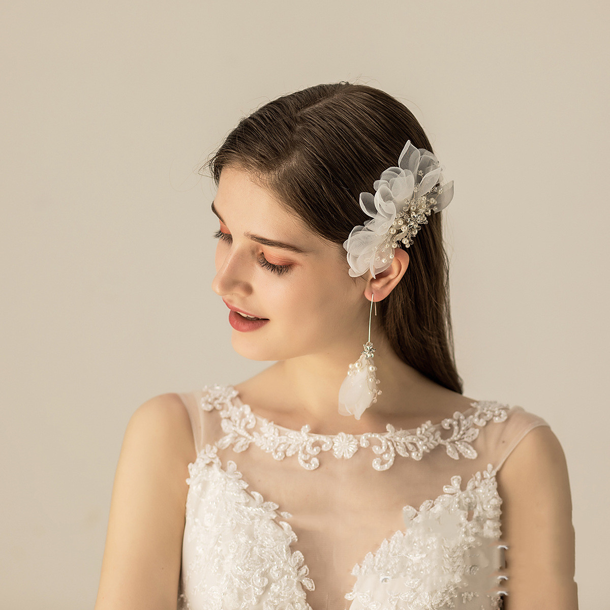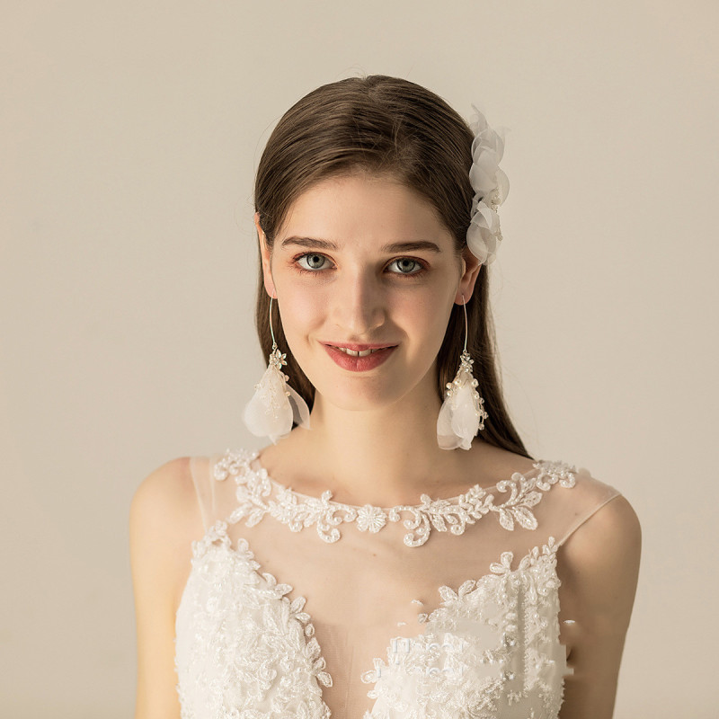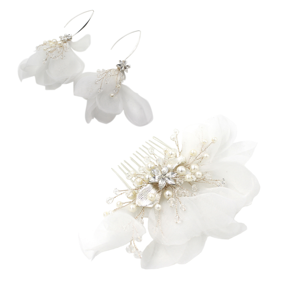 Material: OrganzaStyle: SimpleStyle: Women'sShape: FlowerPackaging: Individually packedColor: Hair comb, earrings