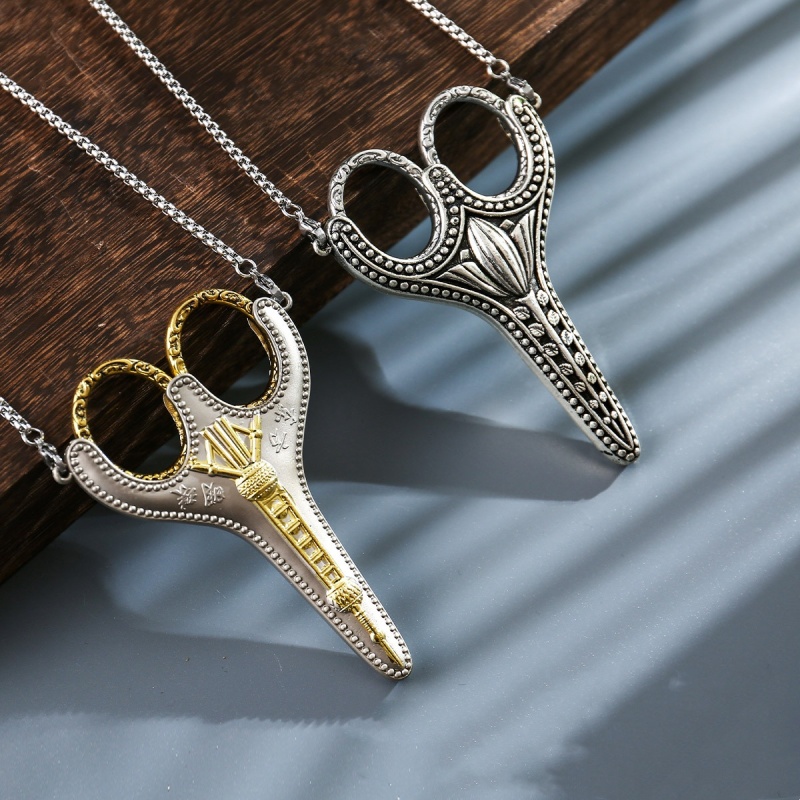 Oriental Pearl Vintage Domestic Handmade Small Scissors Pendant Necklace