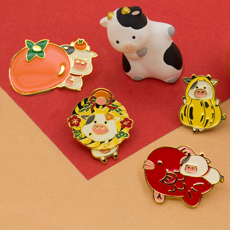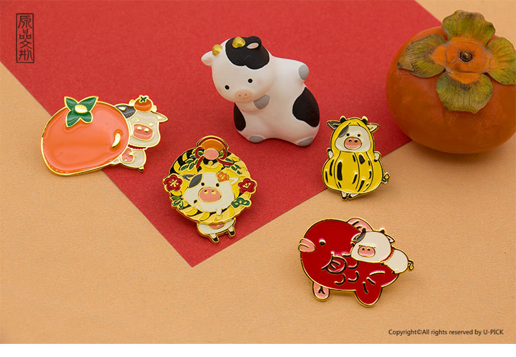 Color: Brooch-Cow Pendulum A, Brooch--Niu Shi Peanut B, Brooch-Niu Shi Da Ji C, Brooch-Taurus D