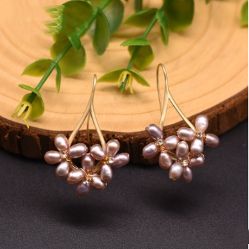 Color: Natural Flower Pearl Earrings Style 1, Natural Pearl Purple Flower Earrings Style 5, Natural Pearl Pink Earrings Style 6