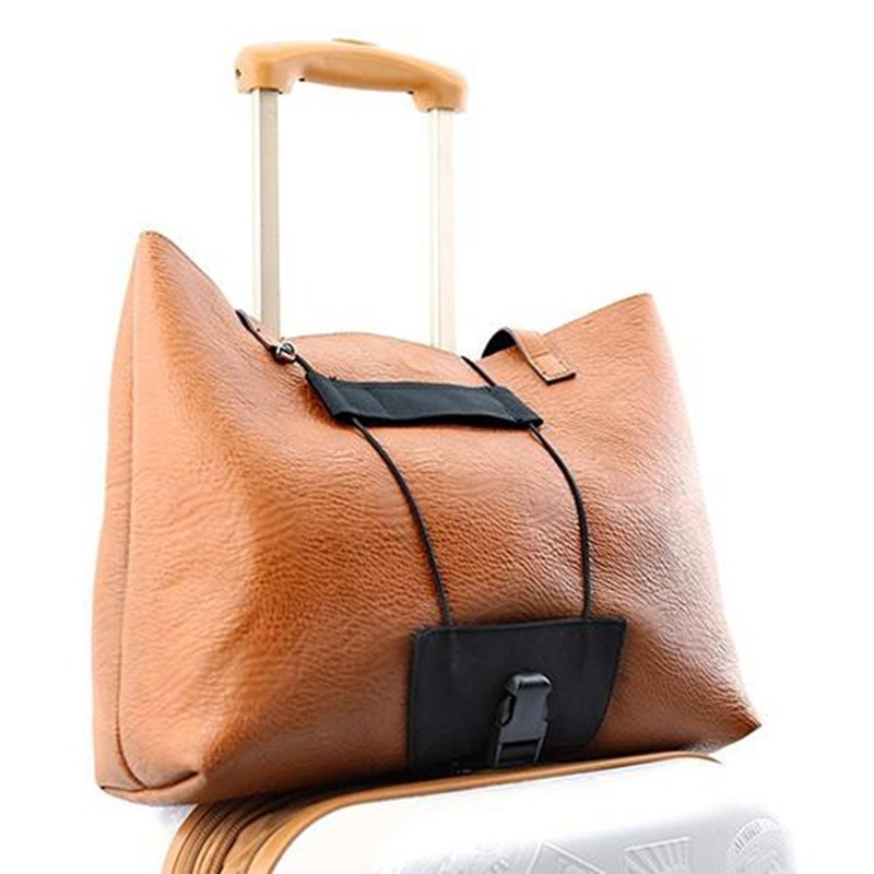 Travel easier when you attach a 2nd bag or coat to your wheeled luggage and two items move as one.