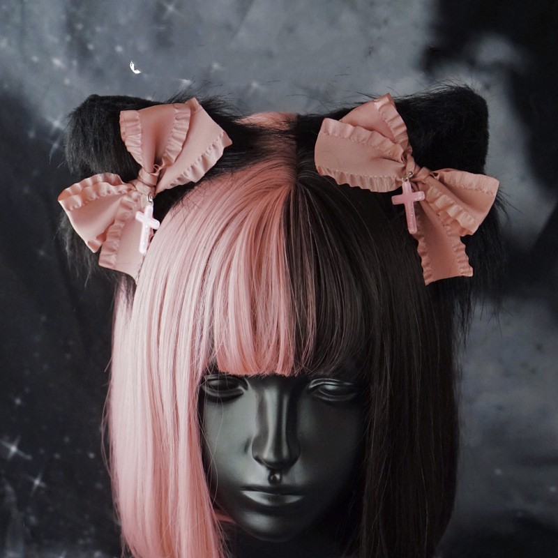 Color: black metal cat ear hair clips, pink bow cat ear hair clips, flounced cat ear hairband, white metal cat ear.