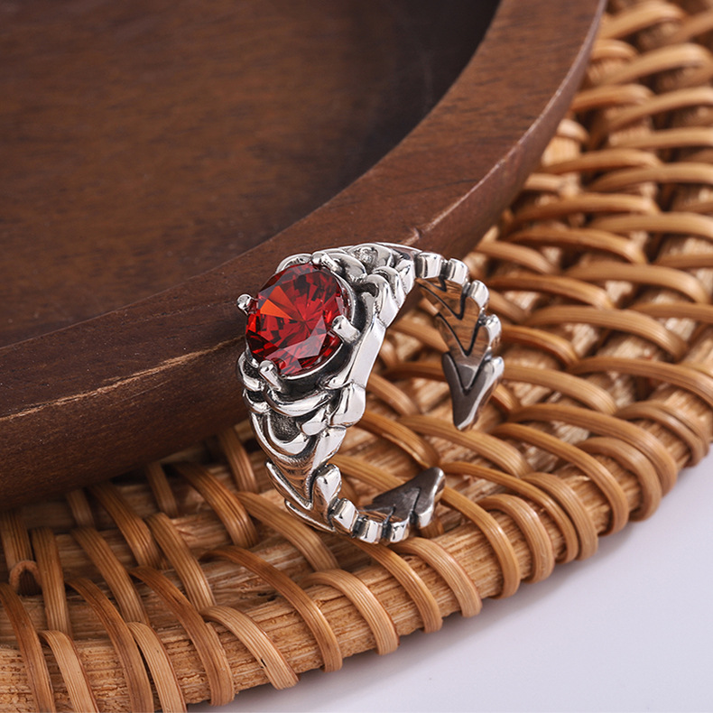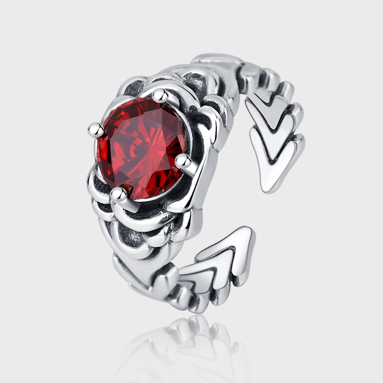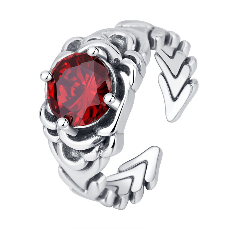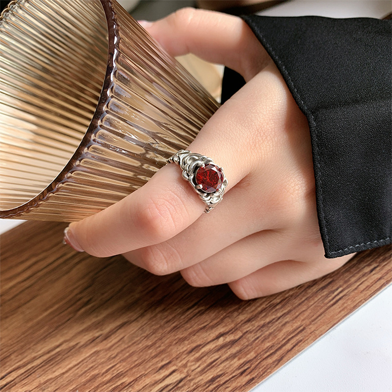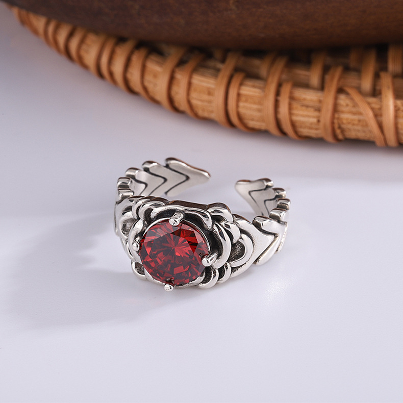 Original S925 Sterling Silver Trend Woven Red Zircon Ring