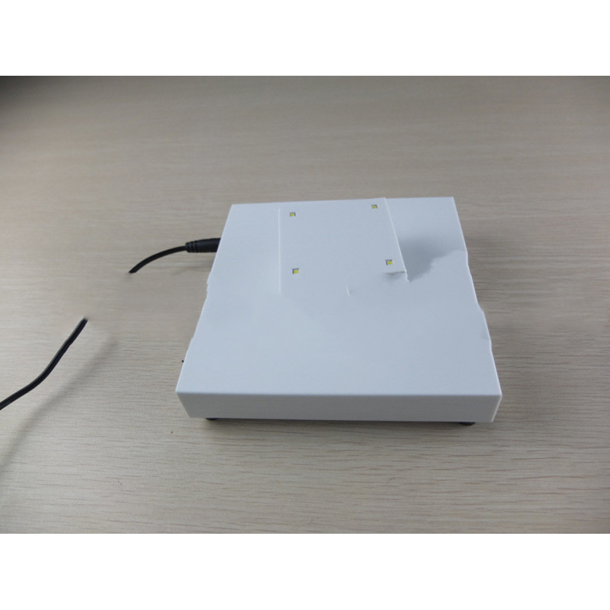 Suspend a square magnet tray with four LED lights on the base and rotate it