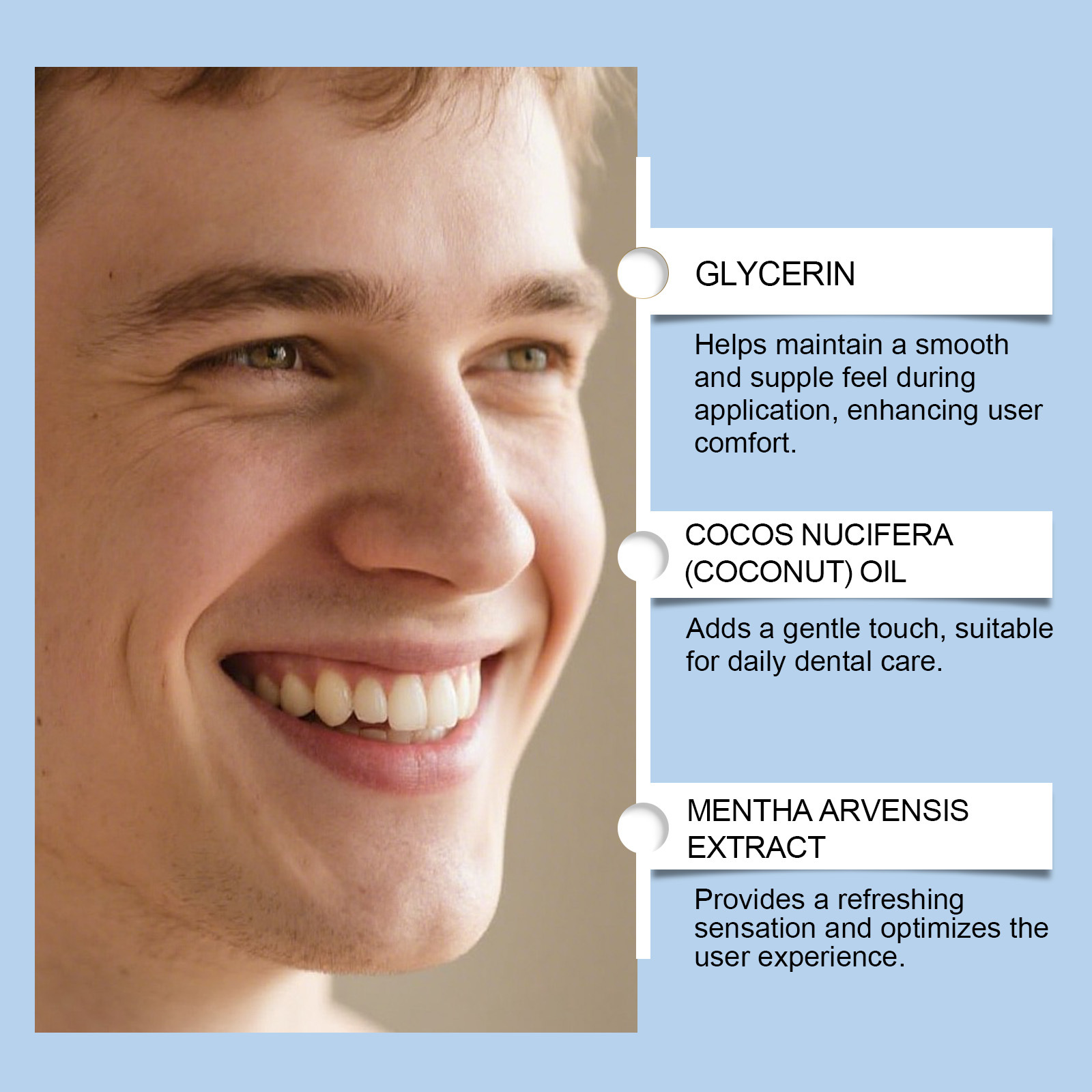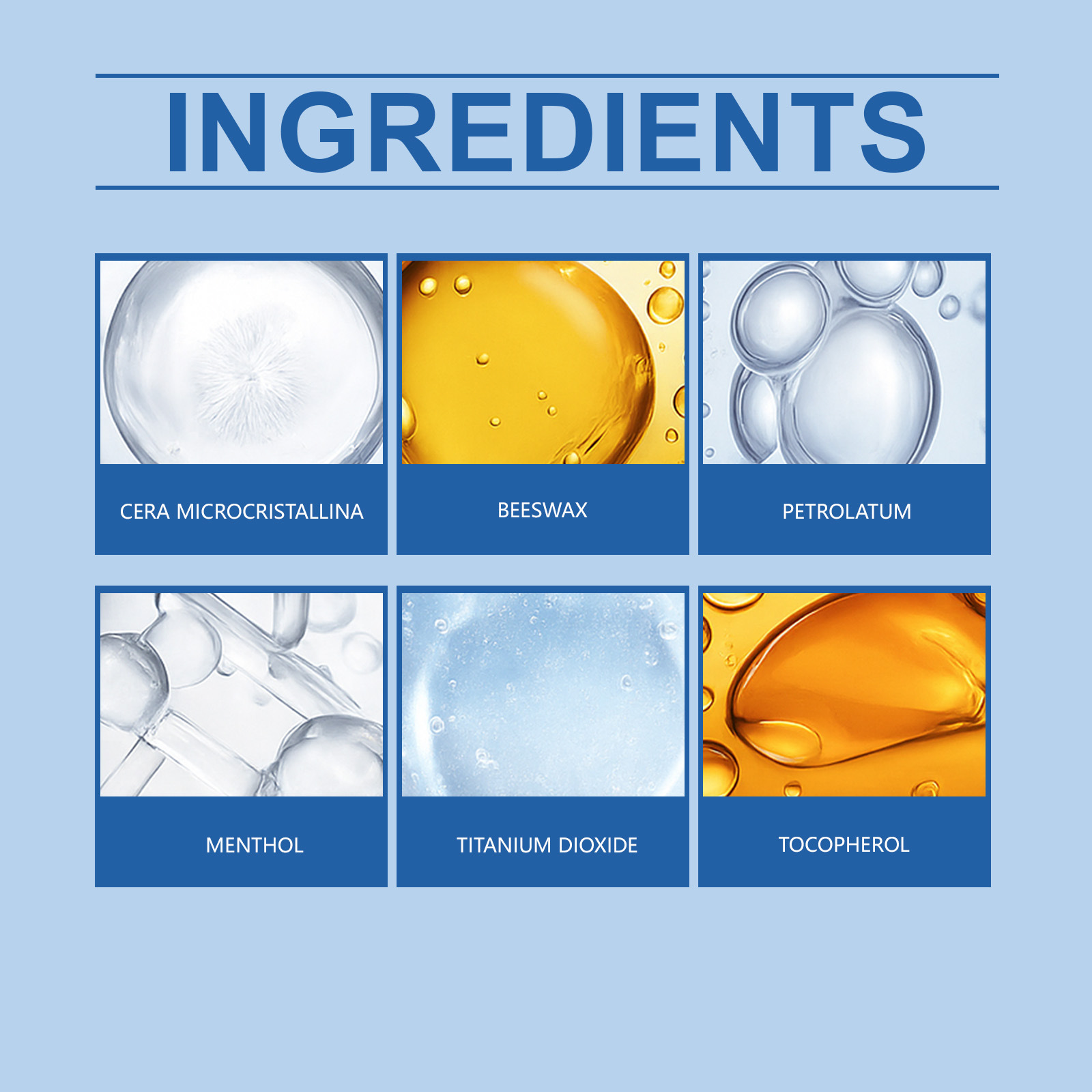 Product information:Ingredients: microcrystalline wax, beeswax, petrolatum, menthol, titanium dioxide, tocopherol (vitamin E).