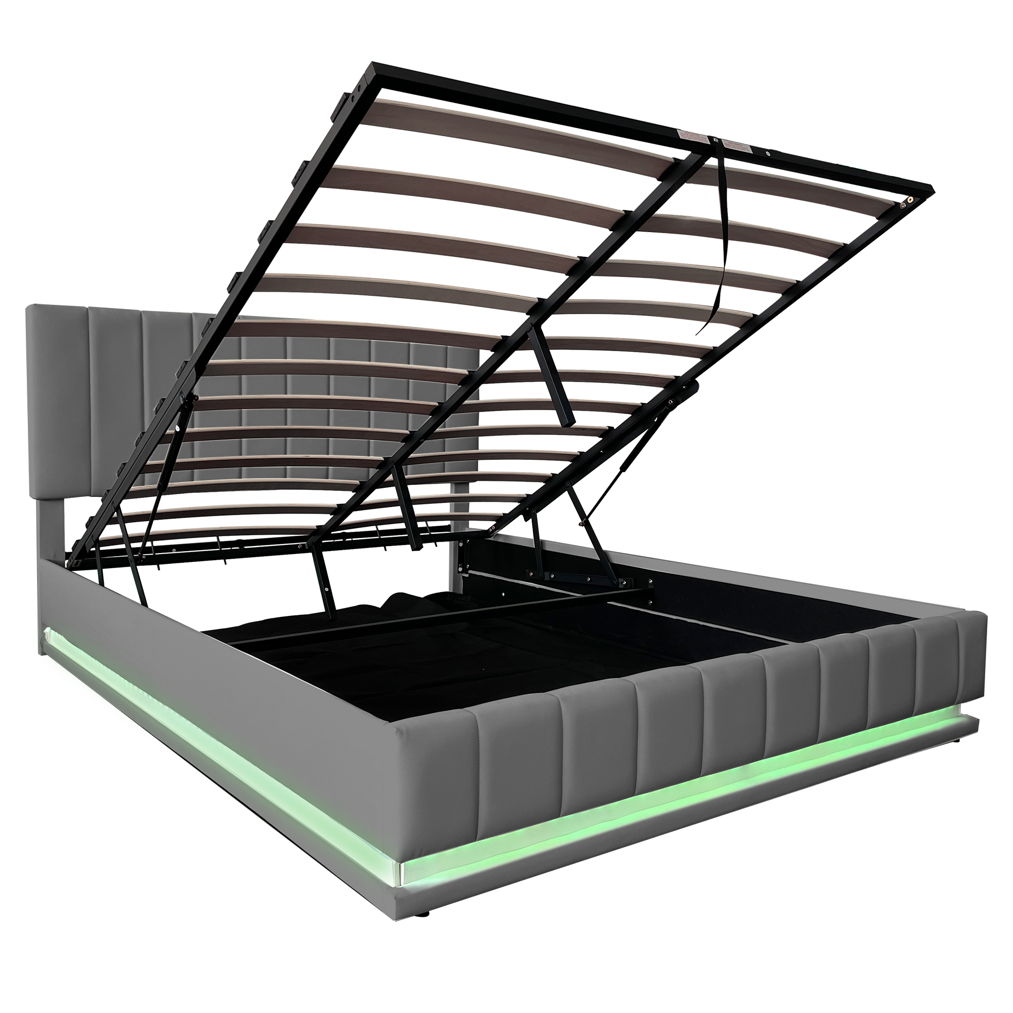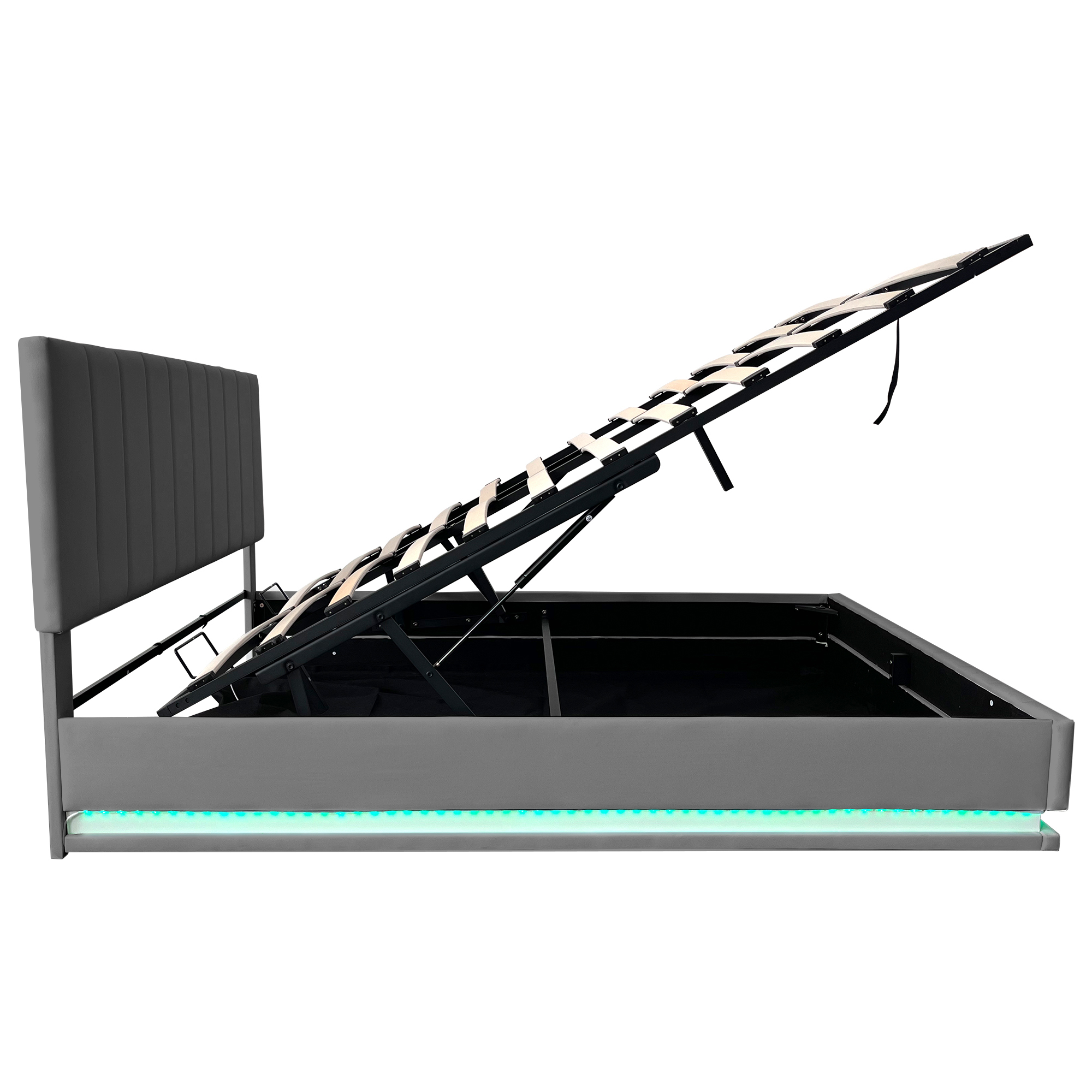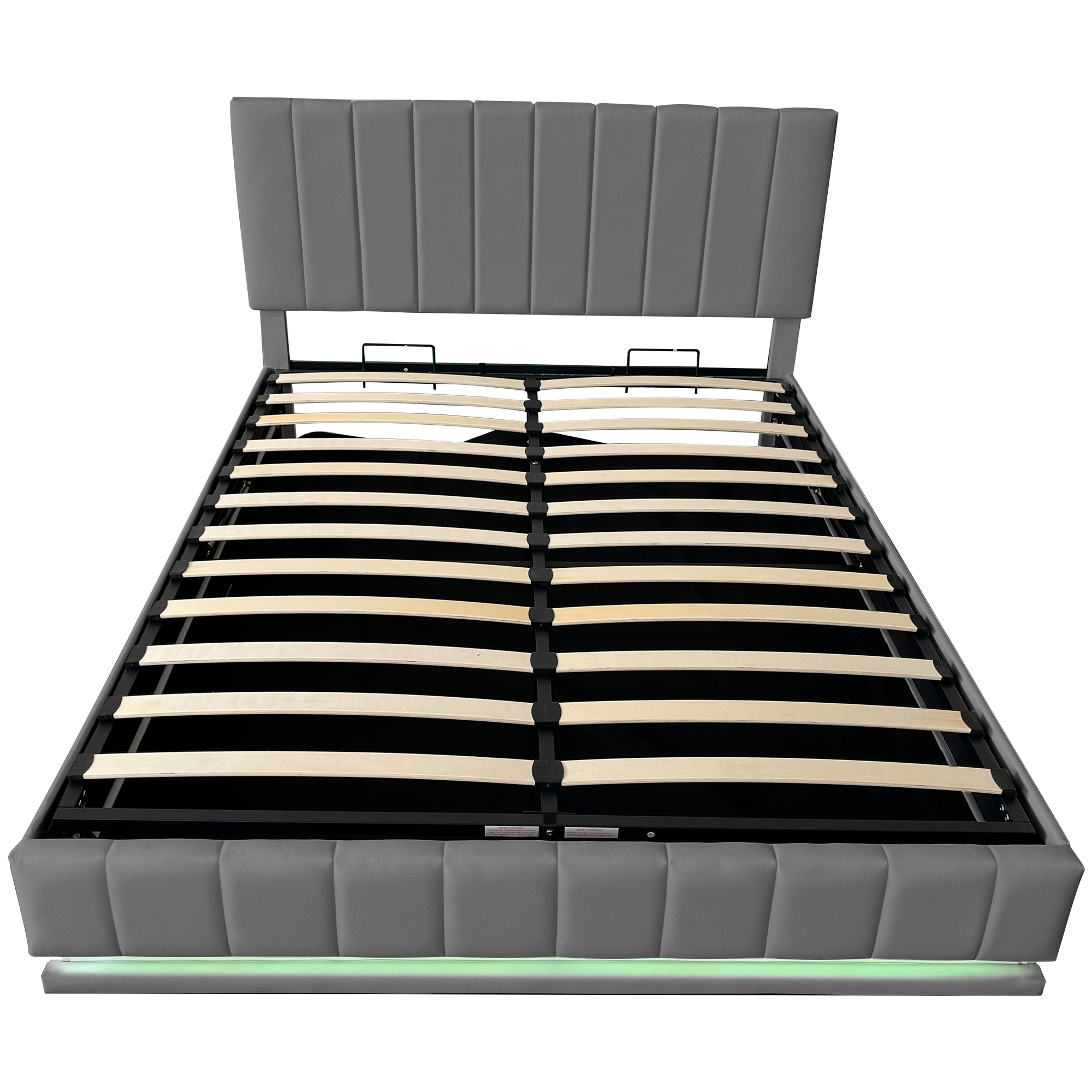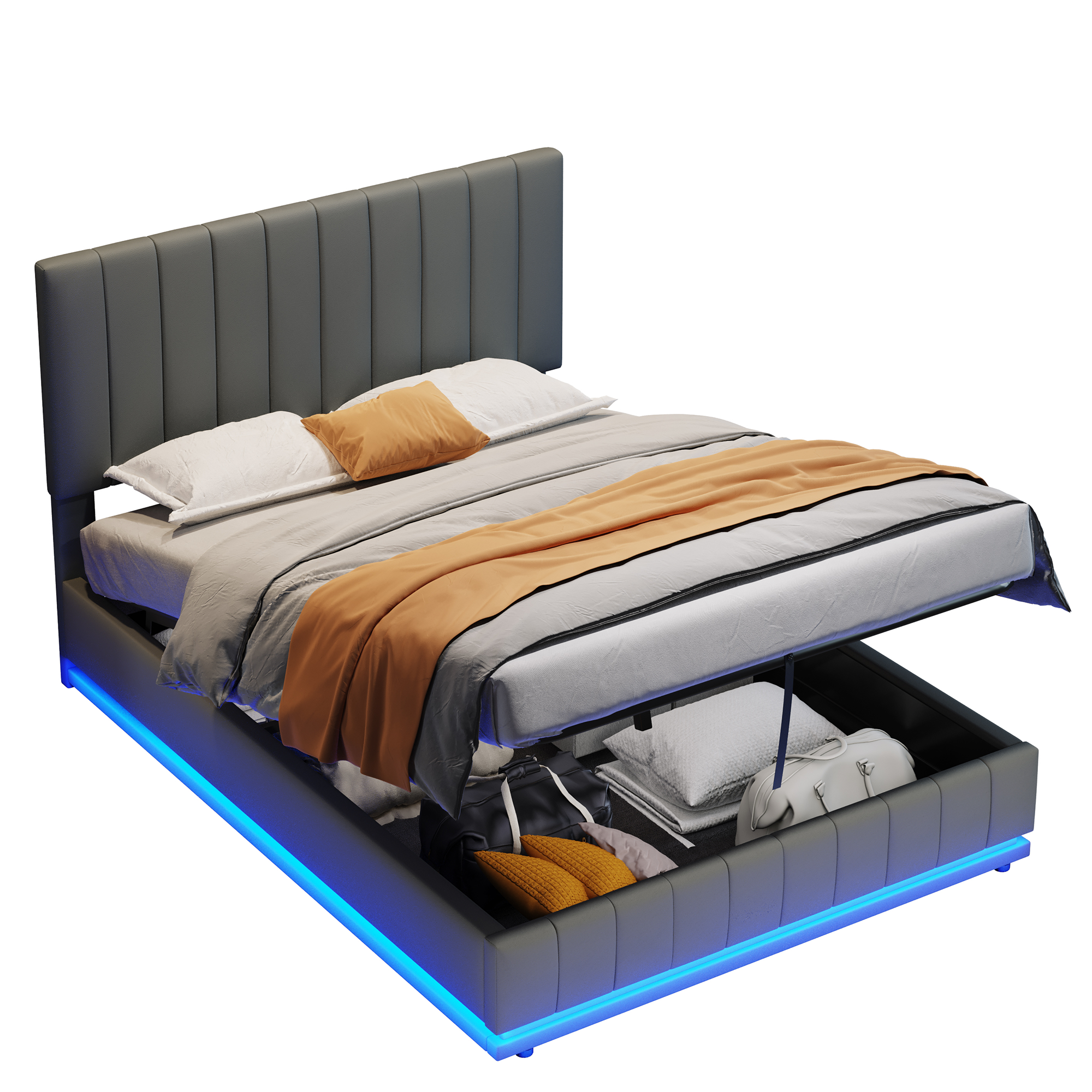 Product Name:Ottoman Double Bed with LED Lighting, PU Leather Upholstered Bed with Hydraulic Storage, 4ft6 Double Bed Frame with Adjustable Channel Tufted Headboard, No Box Spring Needed, Grey (No Mattress)