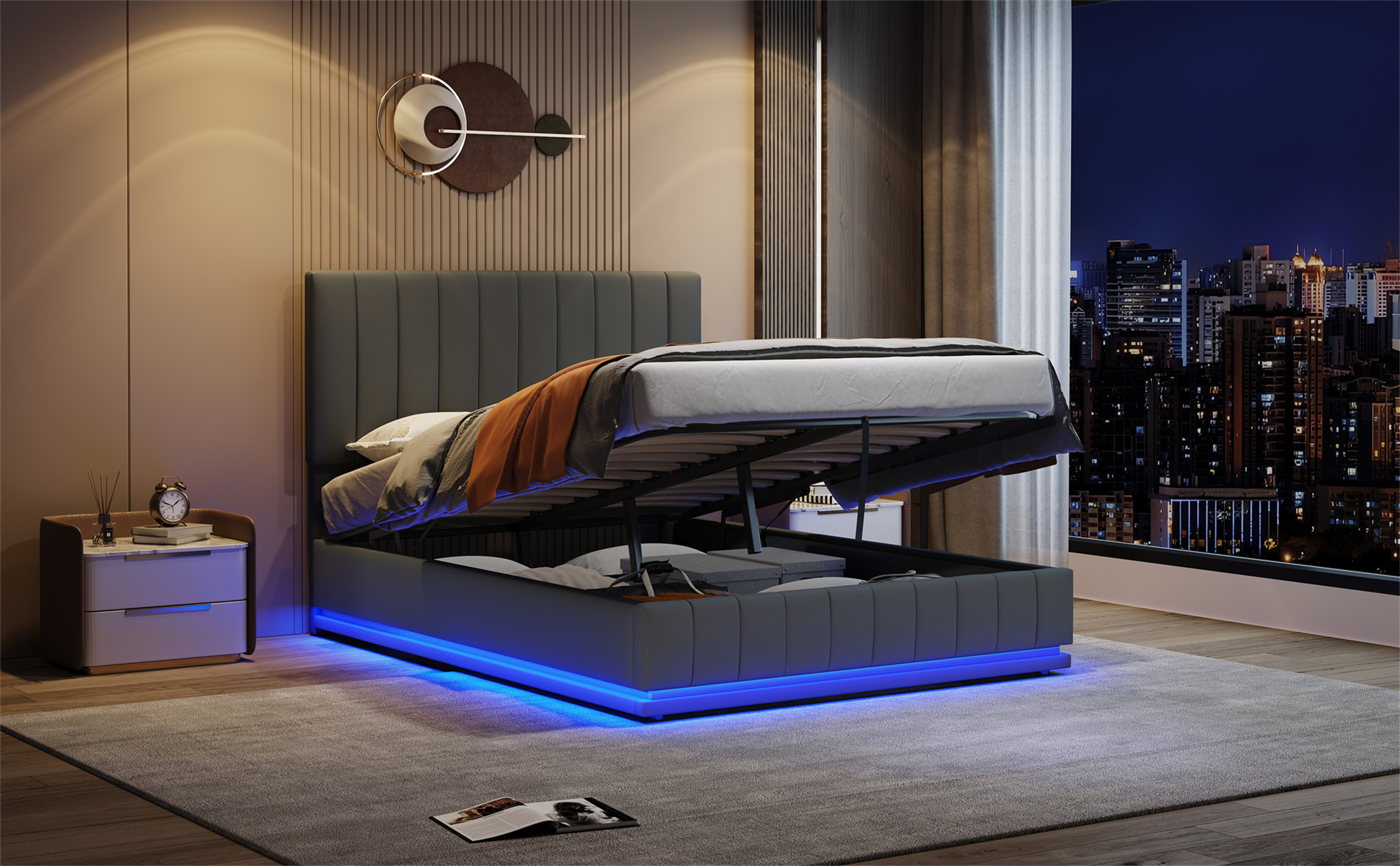 | Special Features | RGB LED lighting strip & Hydraulic storage & Adjustable channel tufted headboard |