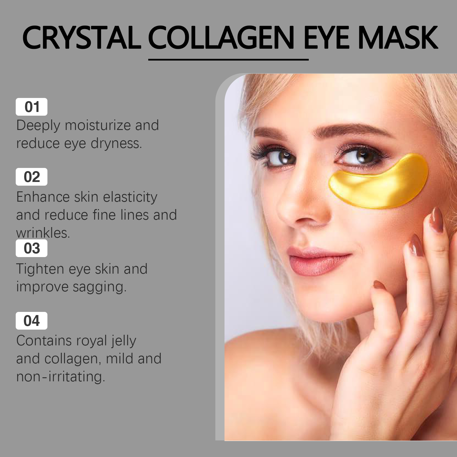 Our crystal collagen eye mask contains collagen, tocopherol collagen and tocopherol. It nourishes the skin around the eyes and makes it glow. Its application method is very simple: thoroughly clean dry facial skin, peel off the back film, apply under the eye, wait 10-20 minutes to remove. It also increases the water content of the skin and reduces fine lines and dryness.