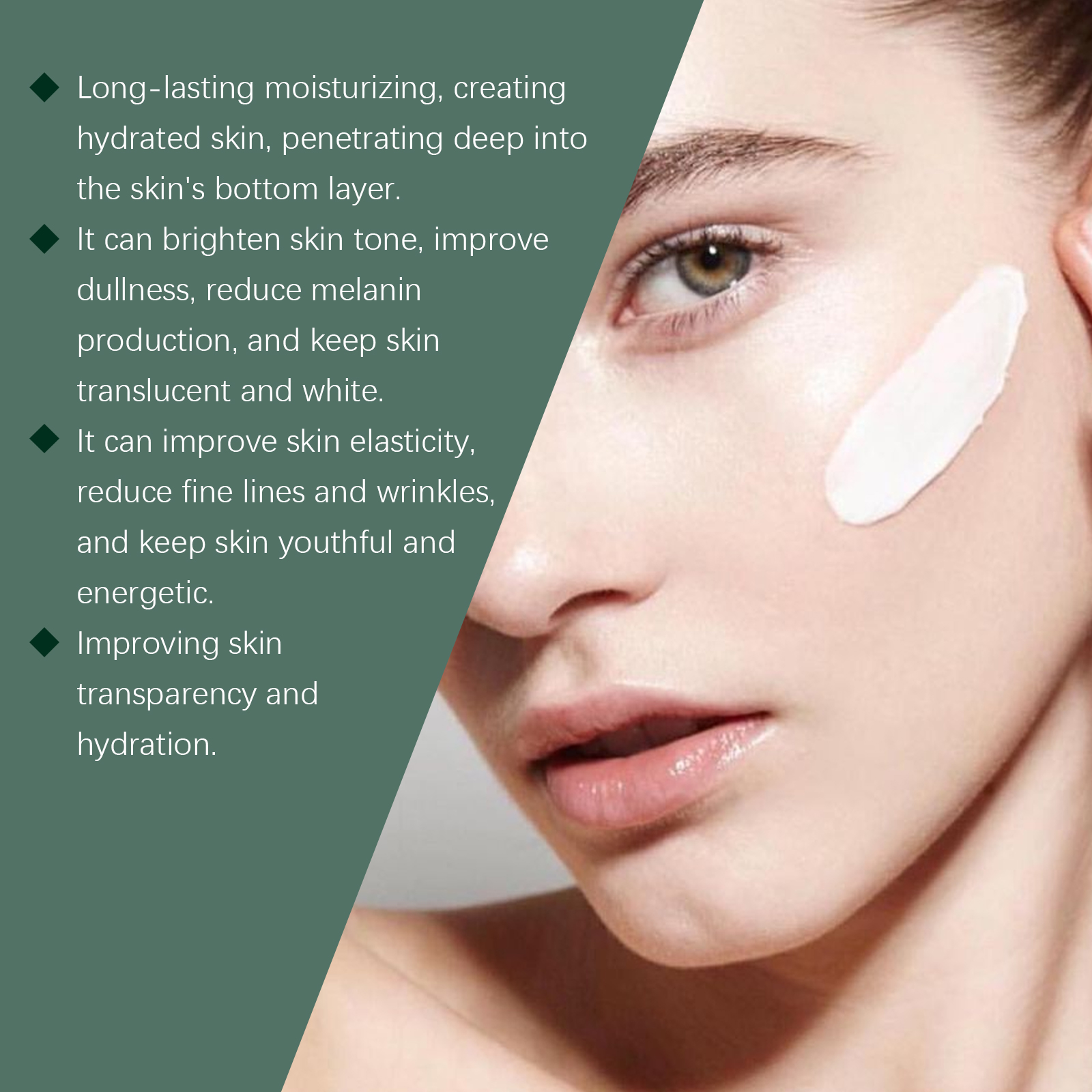 Our multi-purpose serum contains niacinamide and hydroxyasiaticoside. It can improve skin clarity and gloss. Its application method is very simple: clean and dry facial skin, apply an appropriate amount of essence evenly on the face, gently massage until absorbed. And can deeply repair, fade fine lines and wrinkles, restore smooth skin. Promotes cell regeneration and restores youthful skin.