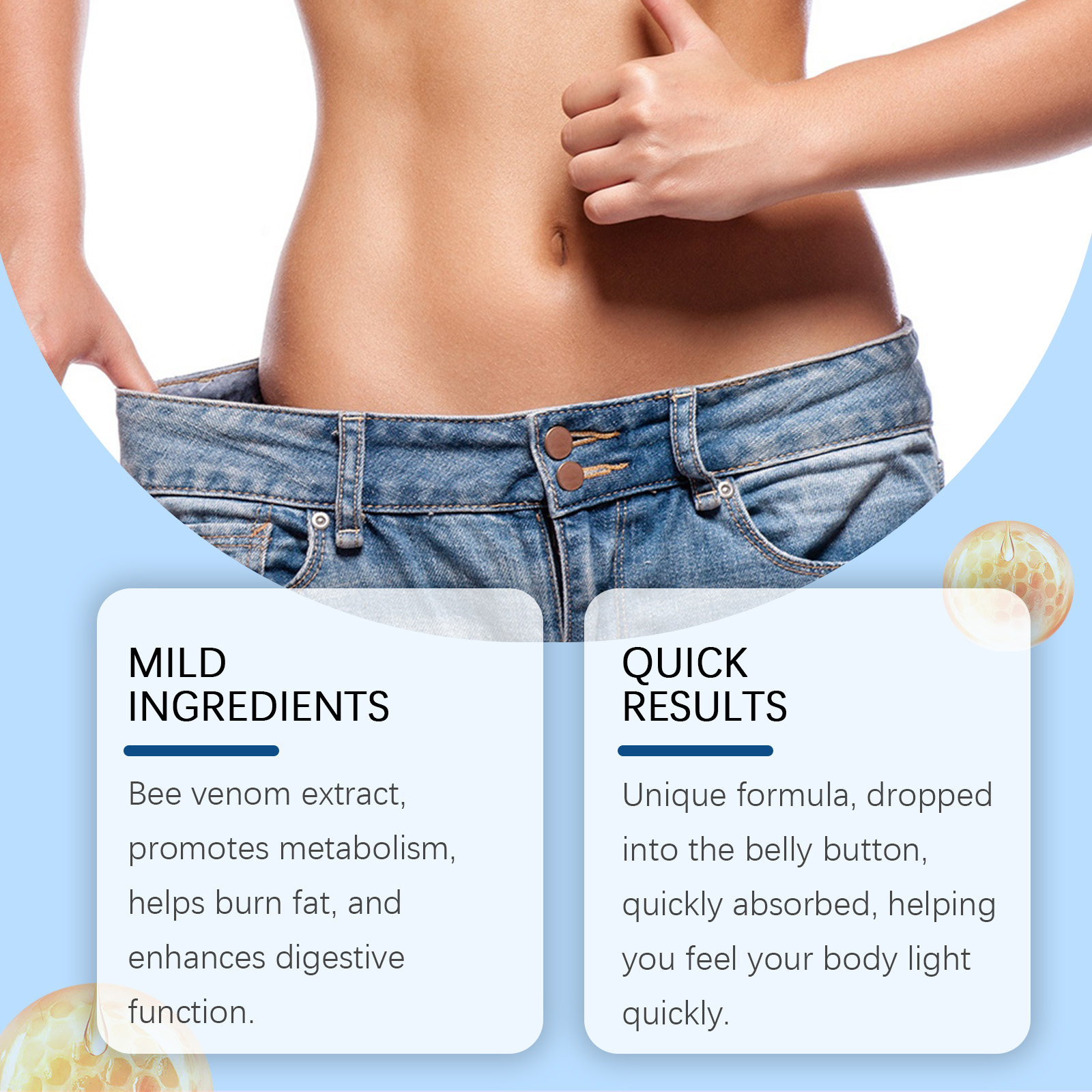 Our body care serum contains peppermint extract, black pepper extract. It can fall into the belly button and absorb quickly, helping you feel light in your body quickly. The way to use it is simple: thoroughly clean and dry the skin around the navel, and apply an appropriate amount of this product to the navel for absorption. And can penetrate quickly, directly to the gut.