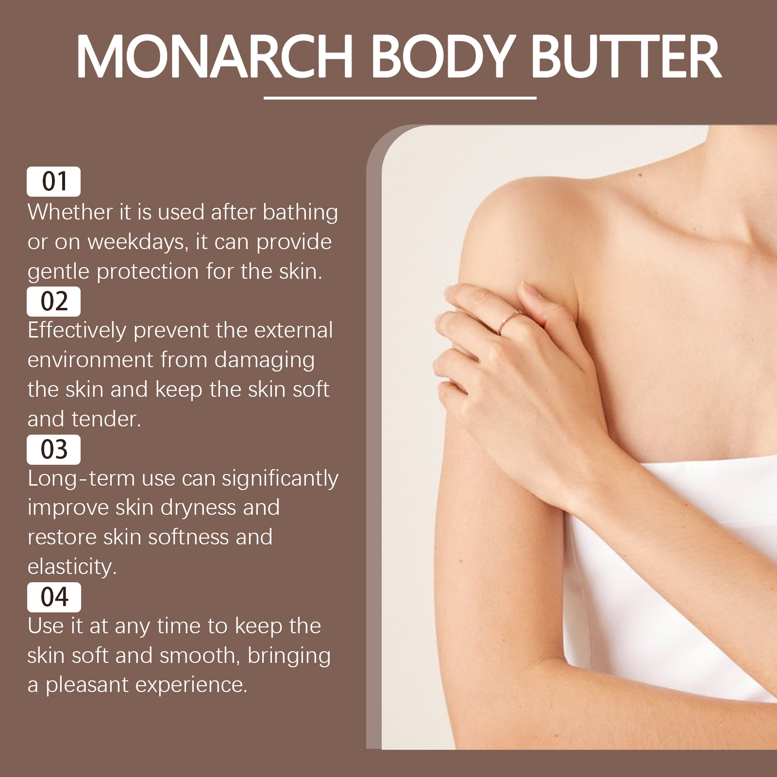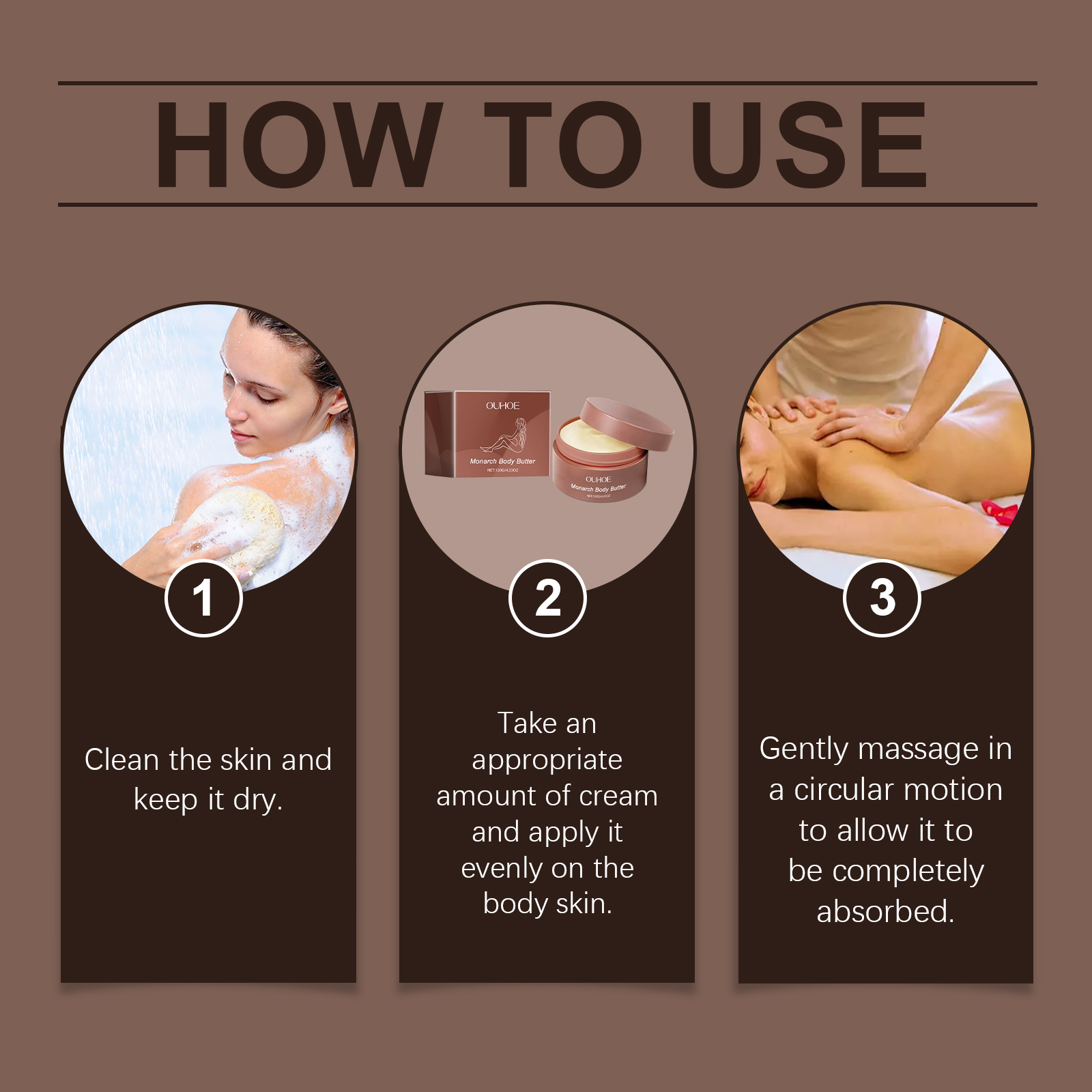 Our body moisturizing cream contains cedar wood oil and vitamin E (tocopherol), which effectively protects the skin from environmental damage and keeps it soft and smooth. Its application method is very simple: clean the skin, keep the skin dry, take an appropriate amount of cream, evenly apply to the body skin, gently massage in a circular motion, so that it is completely absorbed. It is specially designed for loose skin to help restore firmness and elasticity.
