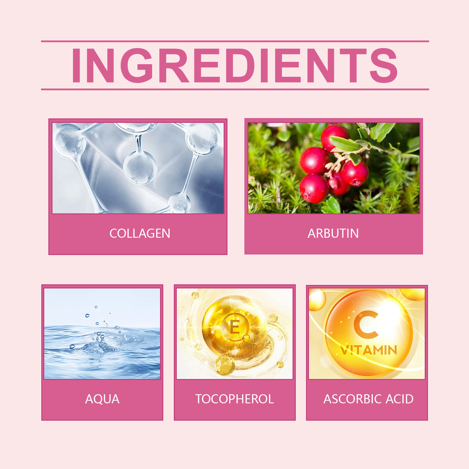 Our body whitening concentrate contains collagen and arbutin. It can effectively remove dark spots on the body, whiten the skin and enhance self-confidence. Helps to improve skin texture, even out skin tone and restore skin softness. Its use method is very simple: clean the body and keep the skin dry, apply an appropriate amount of this product evenly on the body skin, gently massage, so that it is completely absorbed. It can effectively penetrate the skin and provide deep nourishment. Liquid texture, quick absorption, non-sticky.