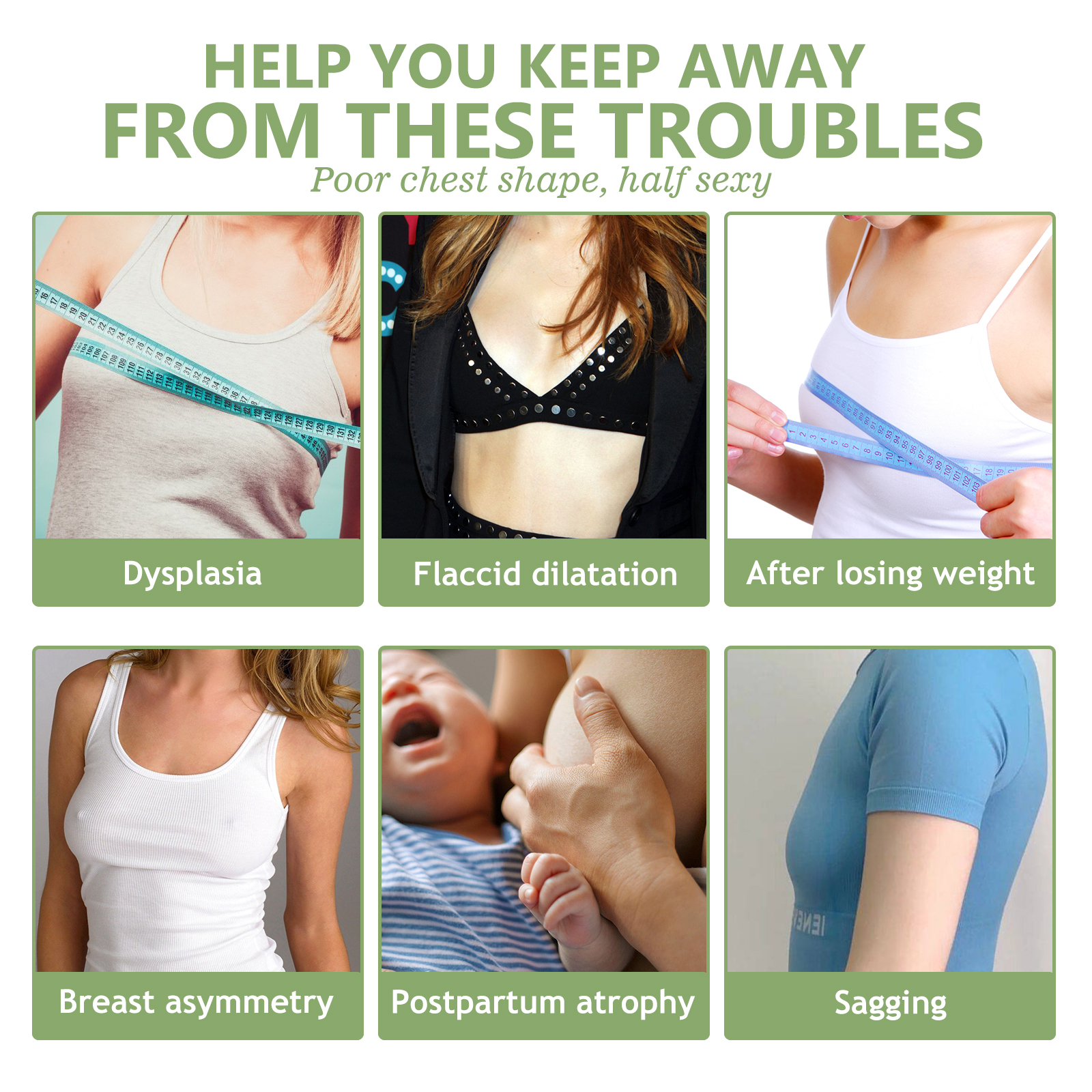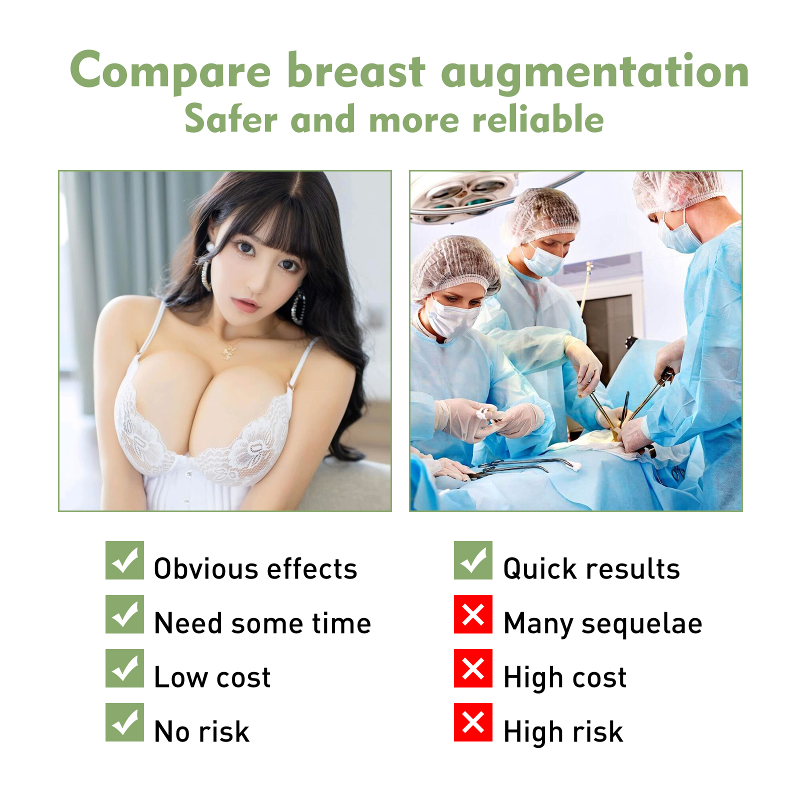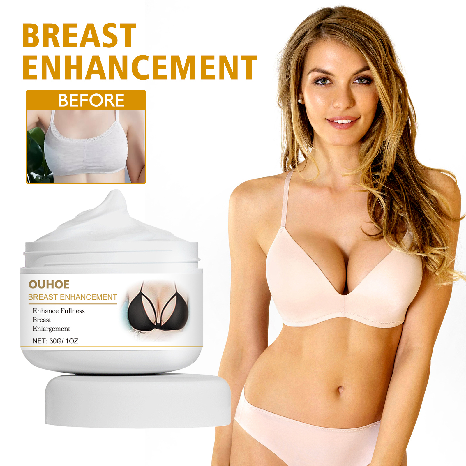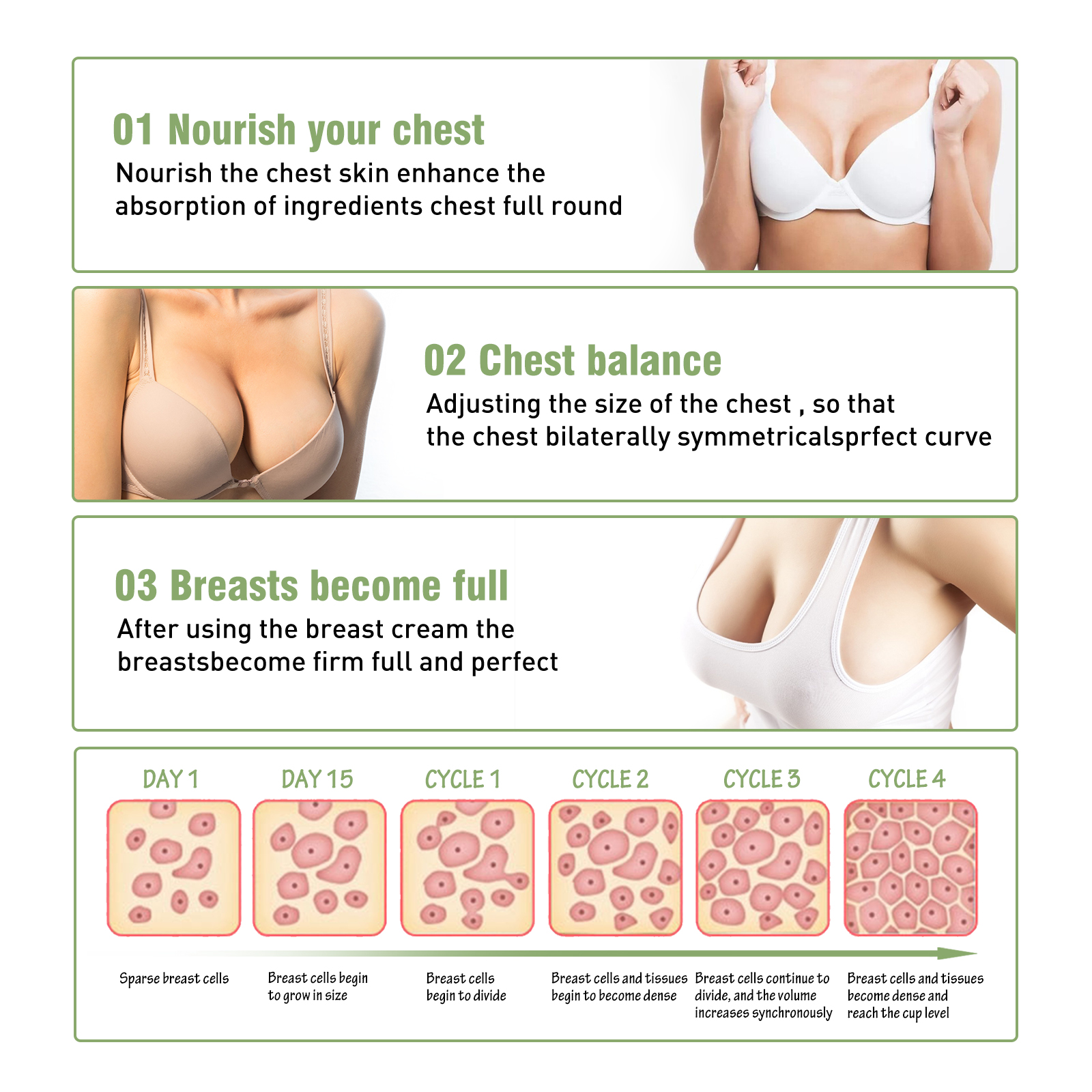 Our beauty and firming cream contains kudzu root and vitamin E. It can nourish the skin on the chest, enhance the chest's absorption of ingredients, and make it plump and round. Its usage method is very simple: After cleansing the skin, take an appropriate amount of this product and gently pat it around the breasts. Then, use the pads of your fingers to massage the breasts from bottom to top. Gently stimulate the breasts by pressing and lifting. And it can make the breasts plump. After using breast augmentation cream, the breasts become firm, full and flawless.