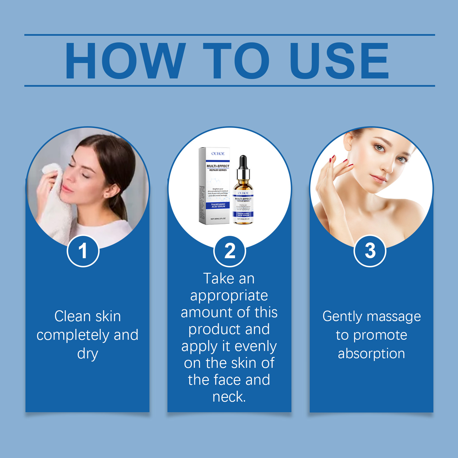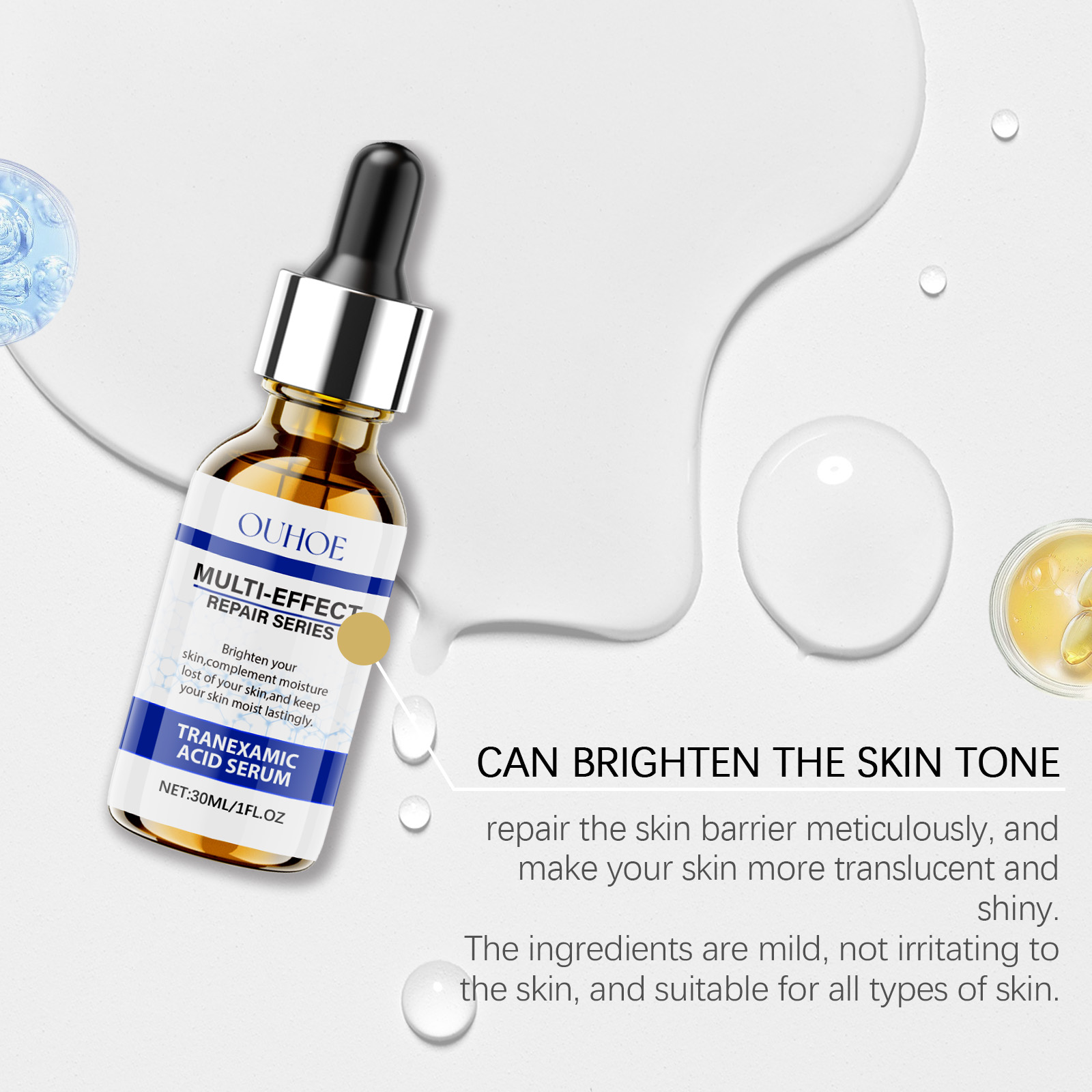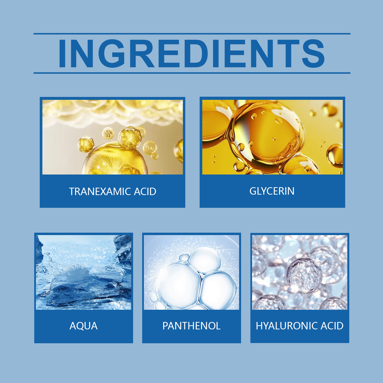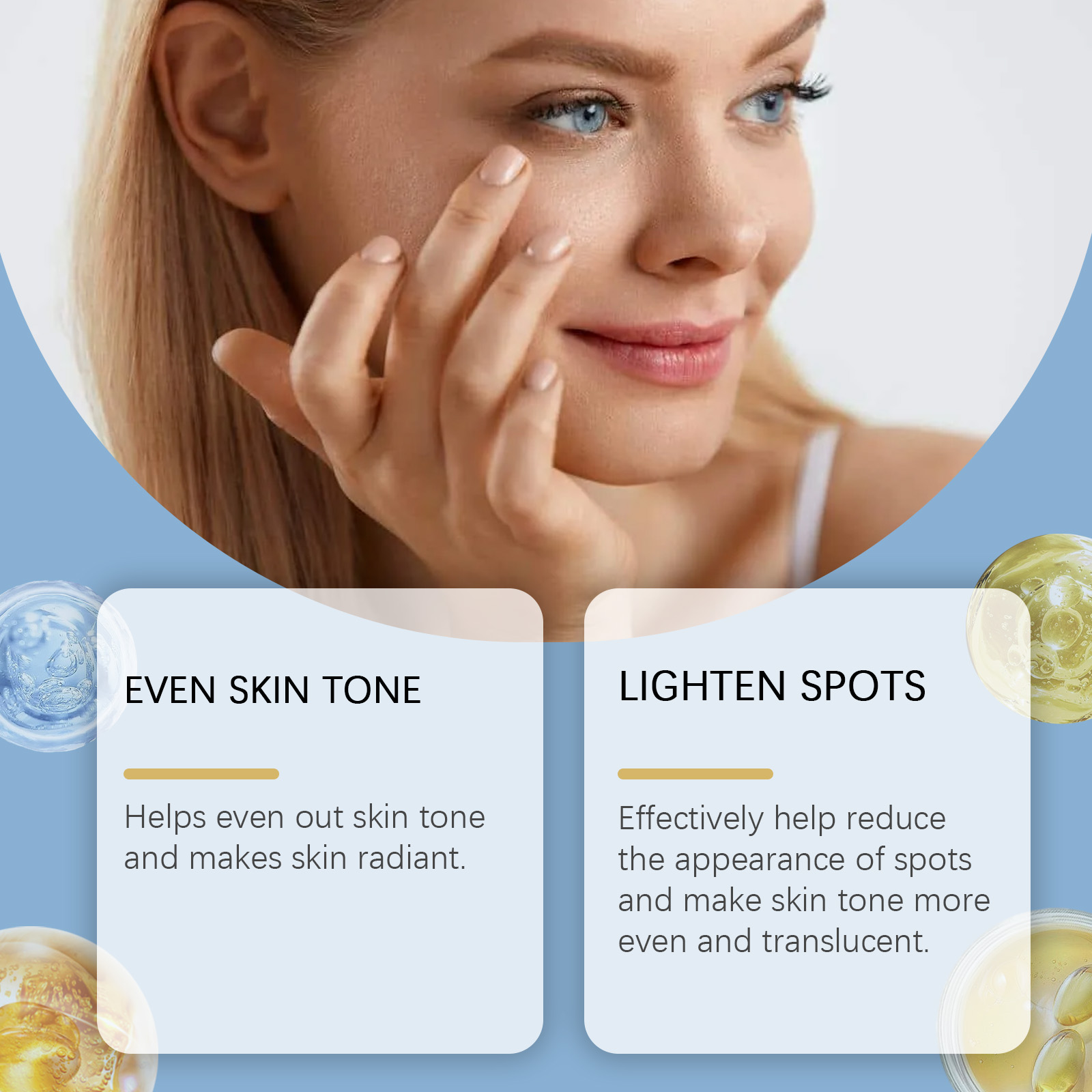 Our Brightening Skin Essence contains glycerin and panthenol (vitamin B5). It can effectively help reduce the appearance of pigmentation spots and make the skin more uniform and translucent. The application method is very simple: thoroughly clean the skin and let it dry, then take an appropriate amount of this product and apply it evenly to the facial and neck skin, and gently massage to promote absorption. It can also help even out the skin tone and make the skin radiant.