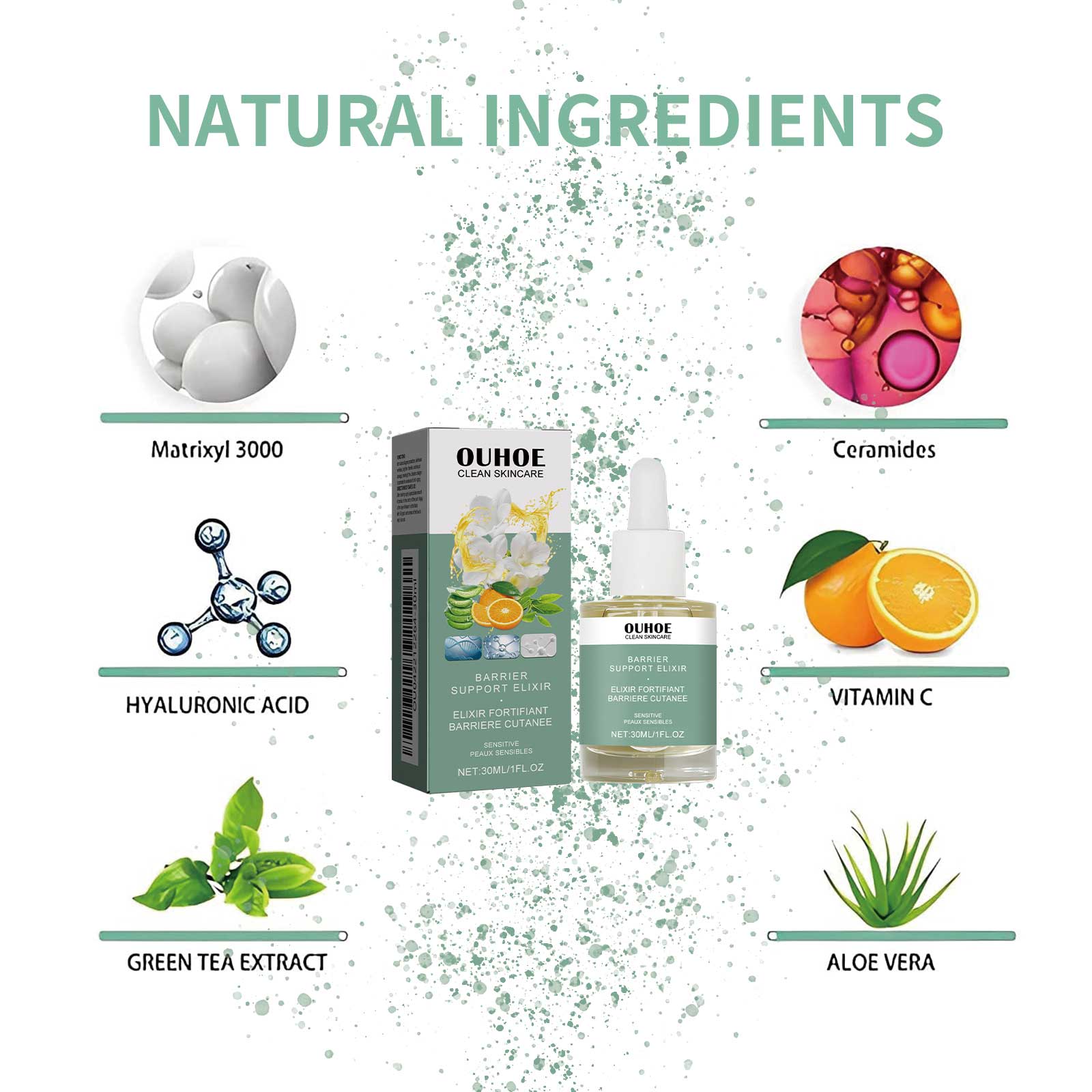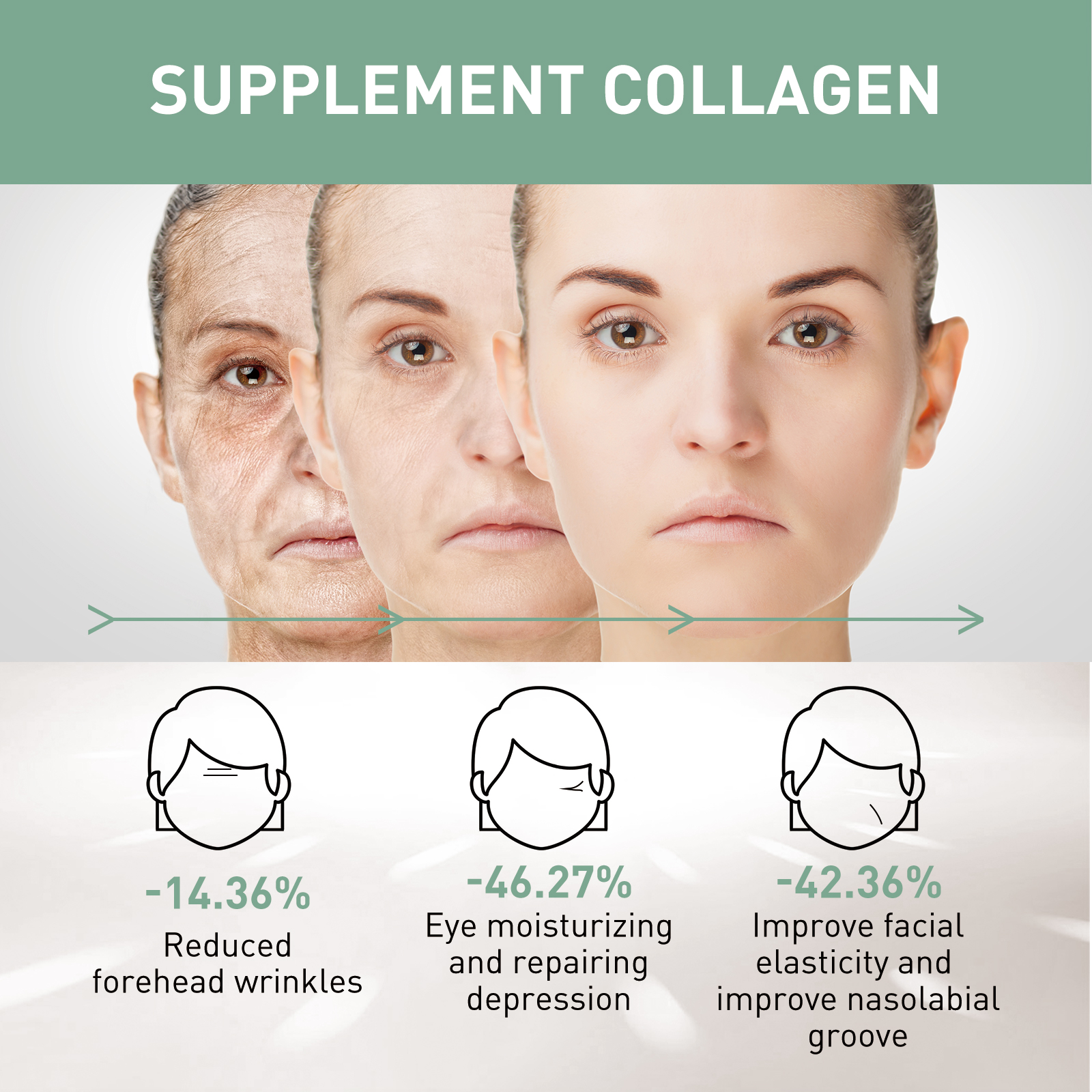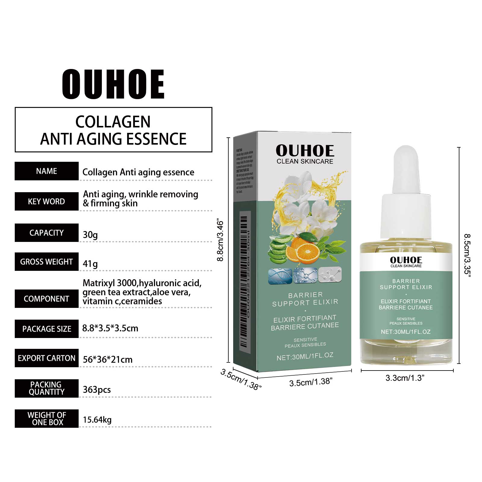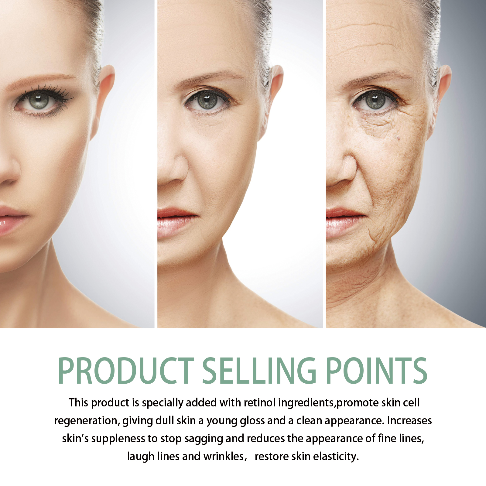 Our collagen anti-aging serum includes hyaluronic acid, vitamin C, and green tea extract. It can promote the regeneration of skin cells, leaving dull skin with a youthful glow and a new look. Increase the flexibility of the skin, stop sagging, reduce the appearance of fine lines, laugh lines, wrinkles, and restore skin elasticity. Its use is simple: First, clean facial skin, wipe off water stains, then apply 3-5 drops of essence evenly on facial skin, massage from inside to outside with fingertips, assist absorption, can be used together with face cream, assist repair, use once in the morning and evening, after use, help smooth skin wrinkles, support skin elasticity, improve skin firmness, reduce eye bags and wrinkles, moisturize skin, Replenish and lock skin moisture, reduce dark spots, and make skin more white.