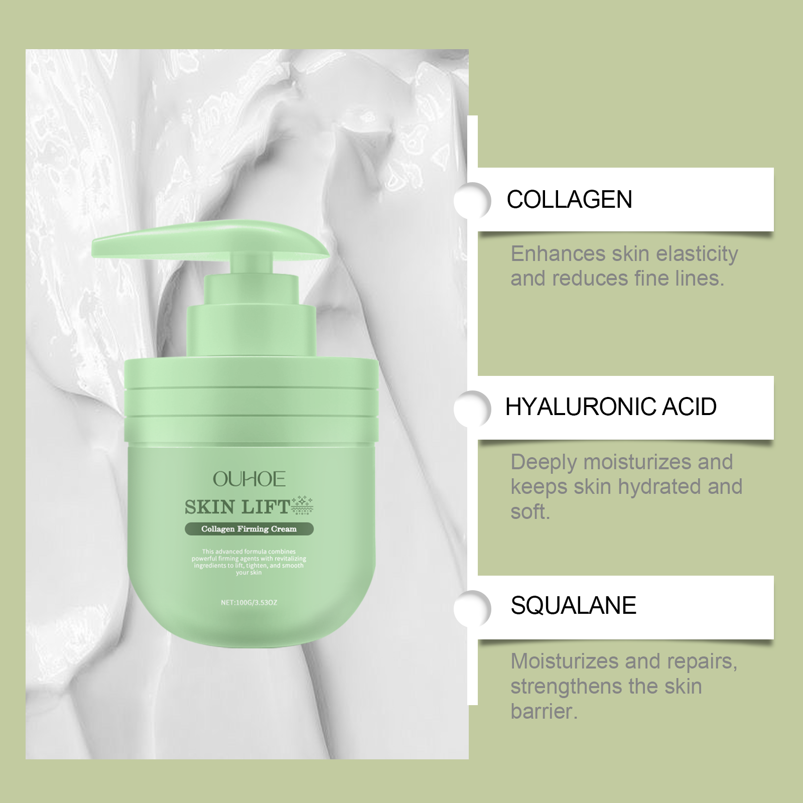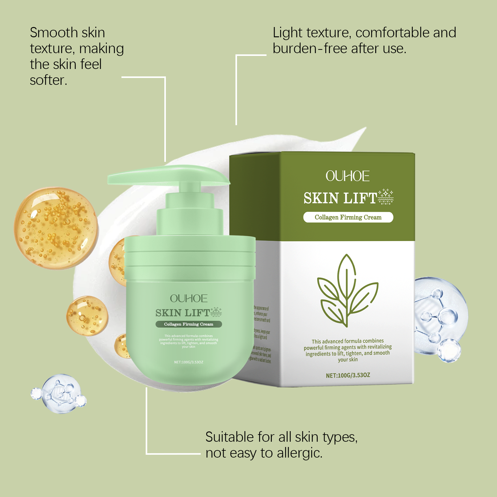 OUHOE Collagen Firming Cream, Gentle Moisturizing Moisturizing Body Moisturizer For Delicate Skin With Fine Lines