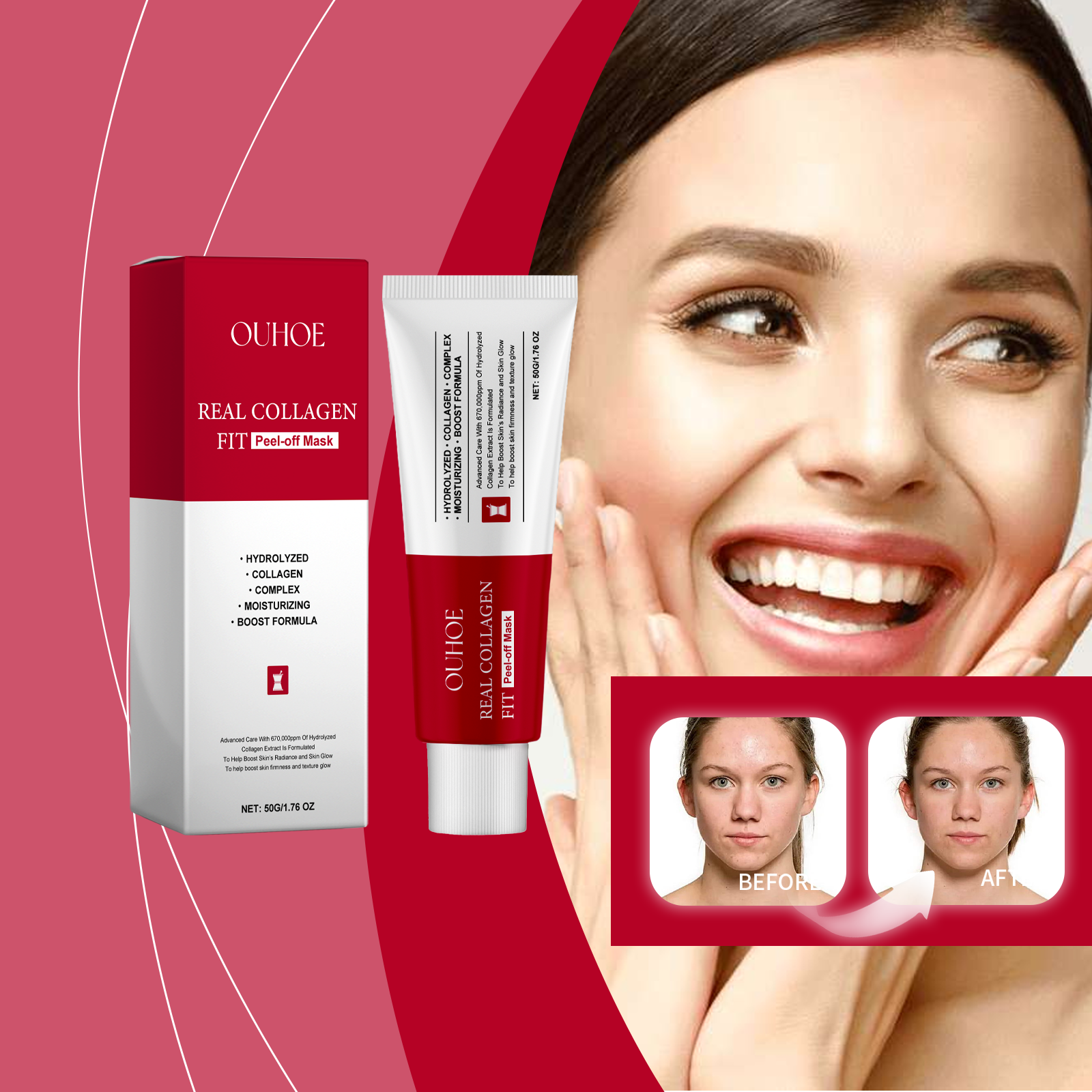 Our collagen-stripping facial mask contains glycerin and vitamin E (tocopherol). It can effectively remove deep dirt and dead skin cells from the skin, making the skin clearer and cleaner. The usage method is very simple: Clean the facial skin and keep it dry. Take an appropriate amount of this product and apply it to the facial skin. Wait for 10-15 minutes, gently peel off the mask, rinse the face with clean water, and keep it dry. It can also remove blackheads and acne, making the skin smoother and more delicate, rich in aloe extract essence, soothing the skin, preventing irritation, and suitable for sensitive skin.
