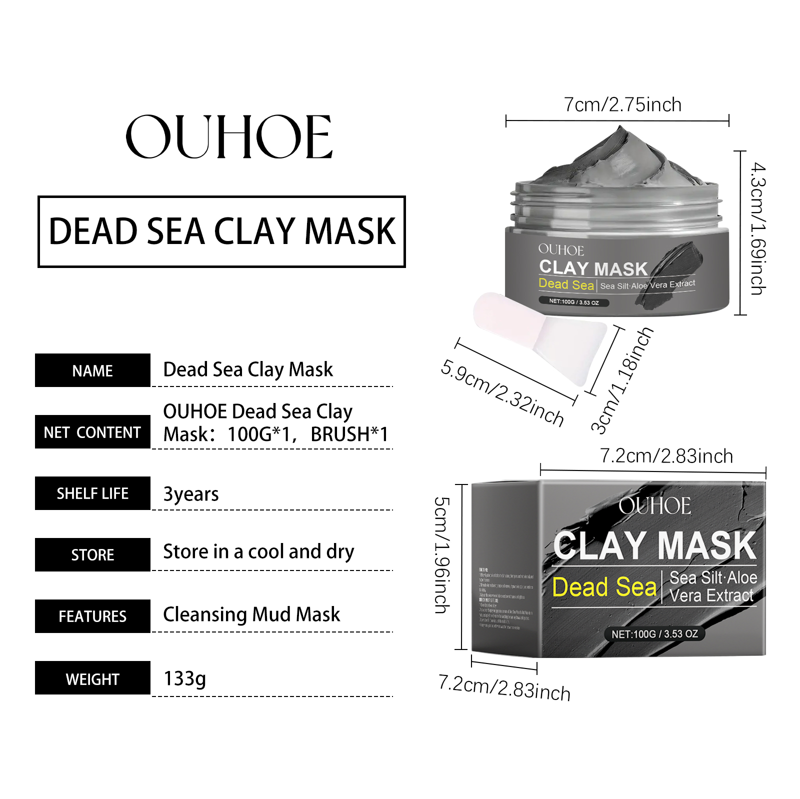 Our Dead Sea mud cleansing mask contains seaweed extract and aloe extract. It can deeply cleanse the skin, removing impurities and oil from the skin. The usage method is very simple: Clean the skin, keep it dry, use a brush to apply an appropriate amount of Dead Sea mineral mud mask onto the mask, apply it evenly to the face, avoiding the areas around the eyes, eyebrows and lips, let it stand for 10-15 minutes until the mask becomes dry, then gently rinse the face with warm water to remove the residual mask. It can also improve the skin's luster and brightness.