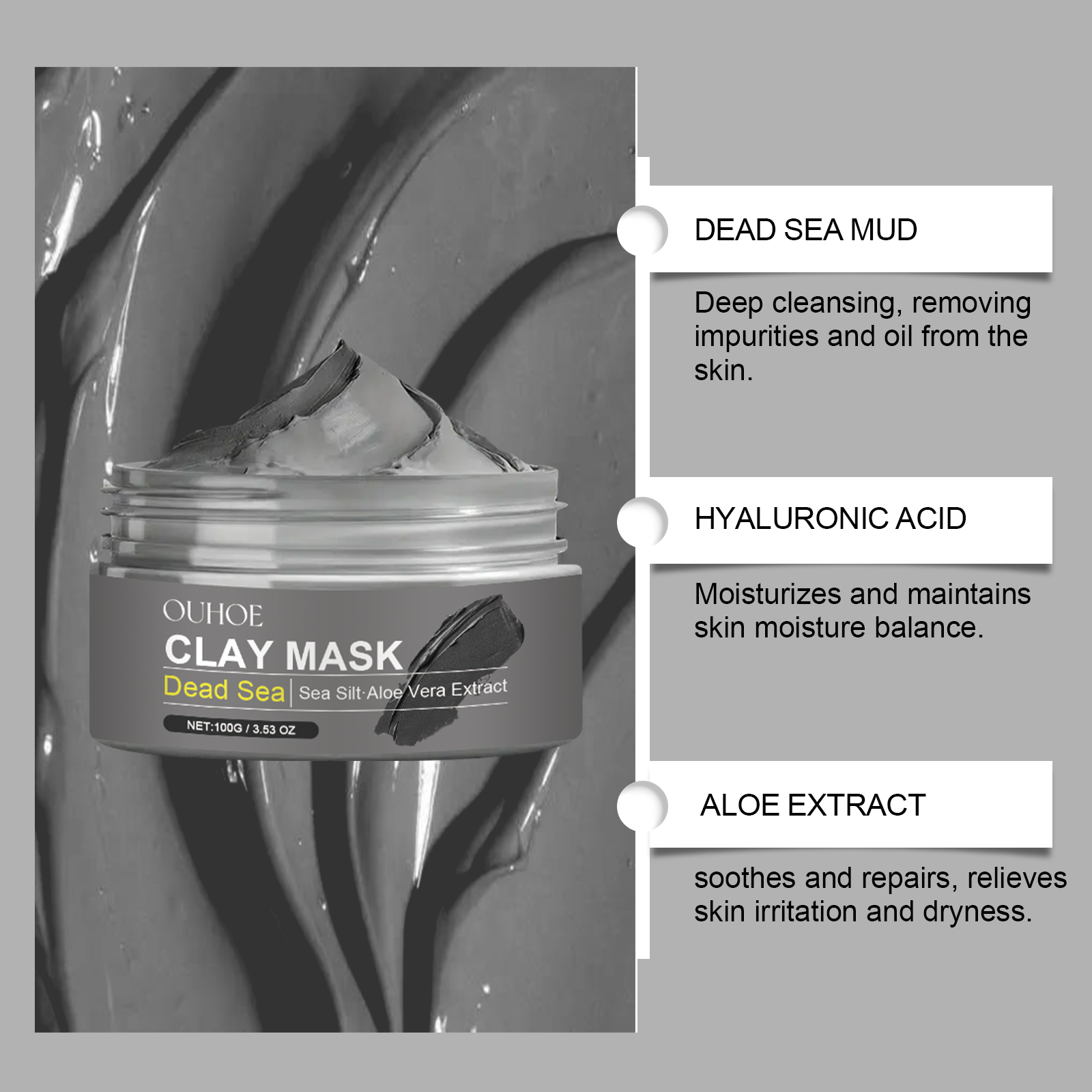 OUHOE Dead Sea Mud Cleansing Mask Gently Cleans And Removes Blackheads, Brightening And Smoothing Skin, Controls Oil And Moisturizes Without Tightness