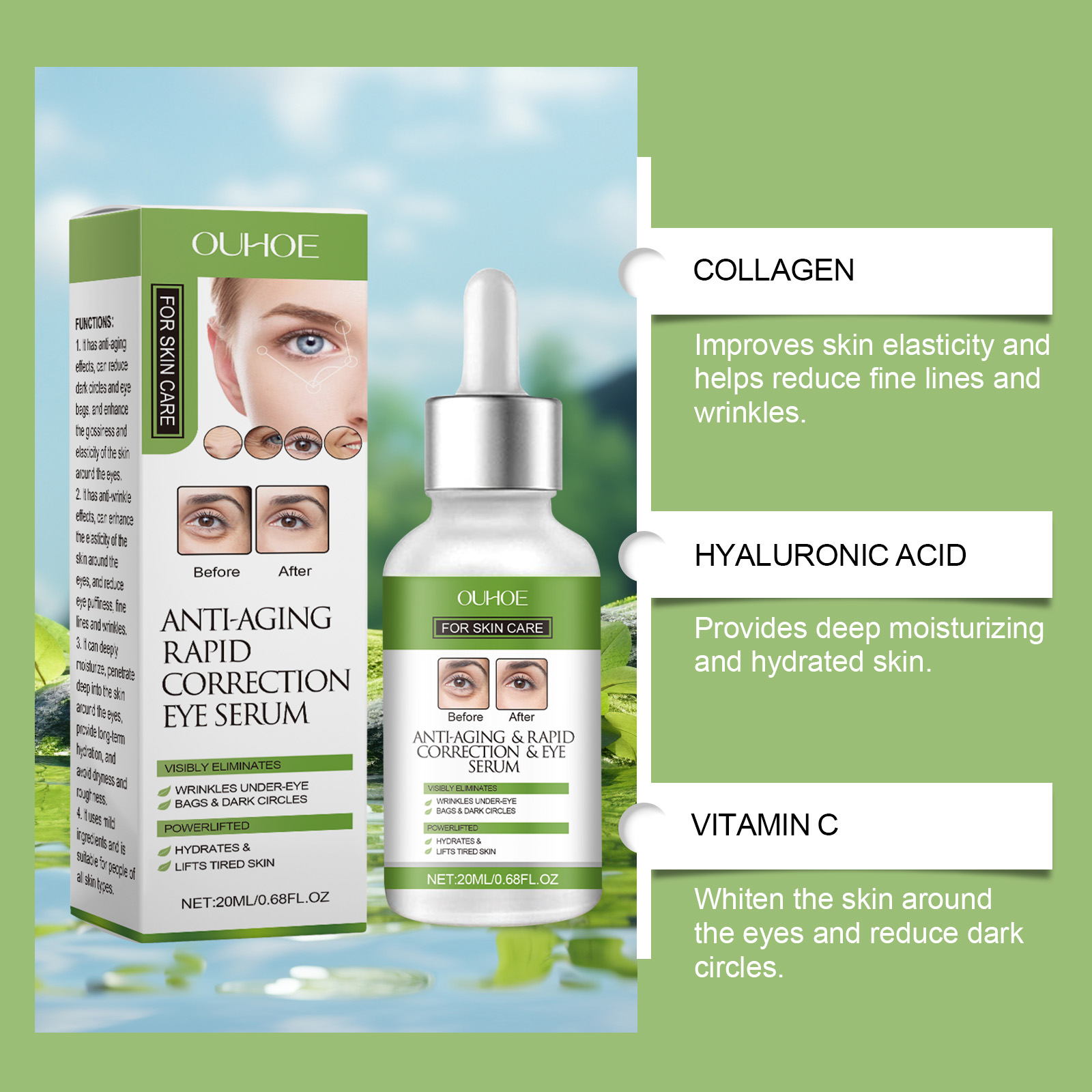 Our eye serum contains ascorbic acid (vitamin C) and acetyl tripeptide-1. It can improve the elasticity of the skin around the eyes, tighten the bags under the eyes, and improve dark circles. Its application method is very simple: thoroughly clean and dry the face and the skin around the eyes, apply appropriate amount of this product evenly around the eyes, gently massage until completely absorbed. And can lighten the dark around the eyes, brighten the skin tone, restore bright and charming eyes.