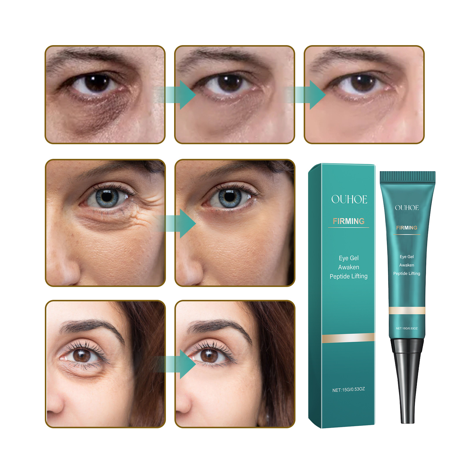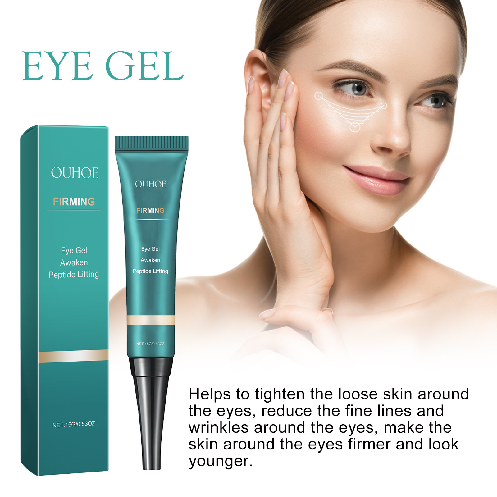 Our Eye Gel contains Nicotinamide, coffee extract, kojic acid. It can tighten loose skin around the eyes, reduce fine lines and wrinkles around the eyes, and make the skin around the eyes firmer and look younger. Its use method is very simple: after facial cleaning, take appropriate amount of this product, evenly apply to the eyes and massage until absorbed. Can quickly remove bags under the eyes, tighten the delicate skin around the eyes, smooth crow's feet, fade dark circles, puffiness, fine lines.