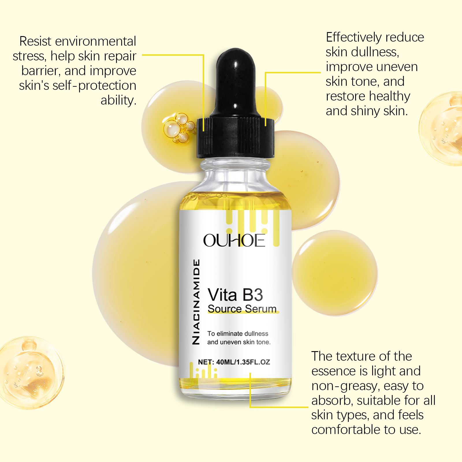 Our facial serum contains niacinamide, arbutin and collagen. It penetrates the skin quickly and locks in moisture for a long time, leaving skin hydrated and smooth throughout the day. Its application method is simple: 1. Clean facial skin and keep it dry. 2. Apply appropriate amount of the product evenly on the face. 3. Gently massage until completely absorbed. Continuous use brightens the complexion, significantly reducing dullness and creating even, translucent skin.