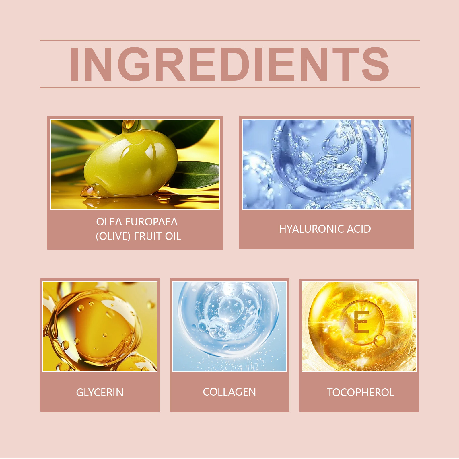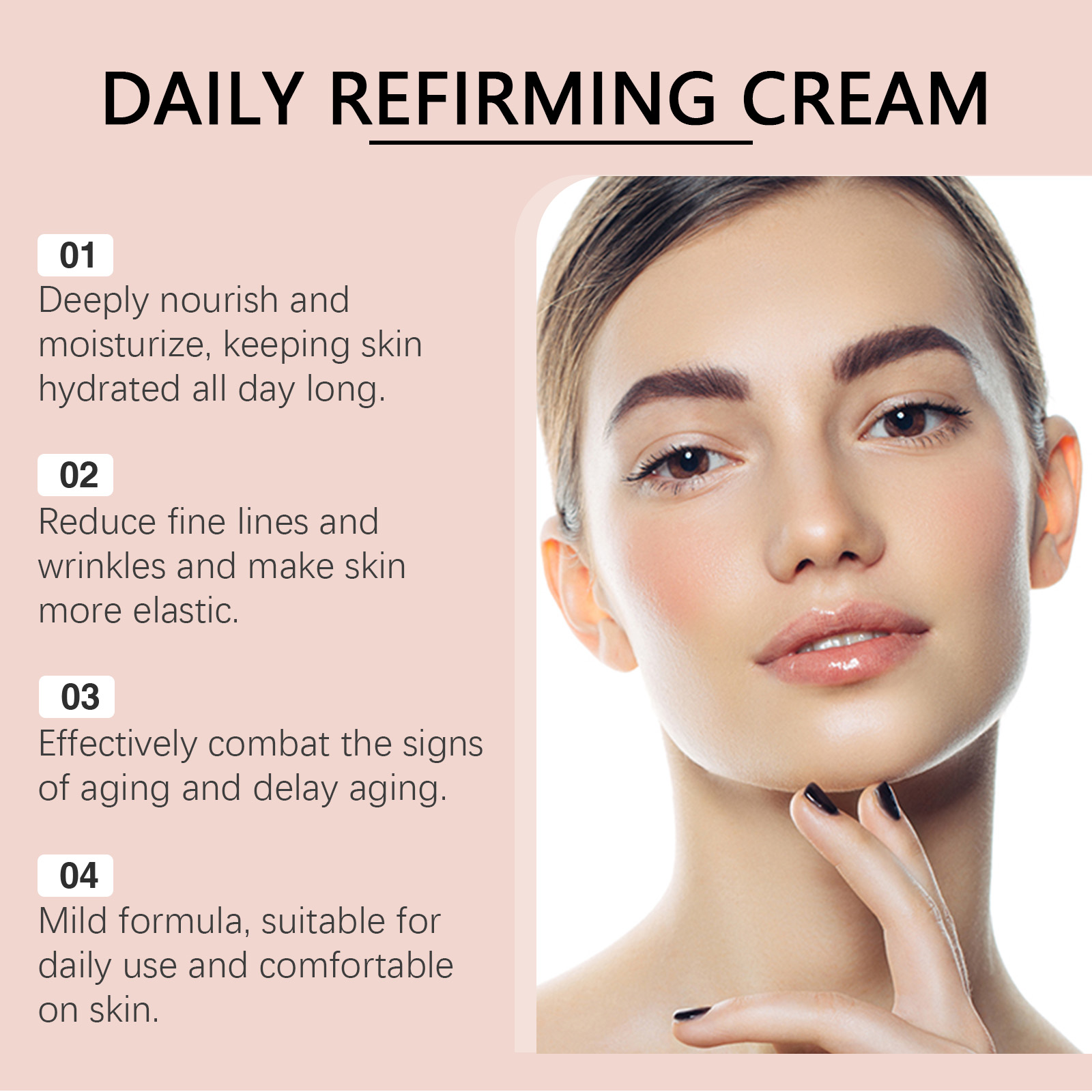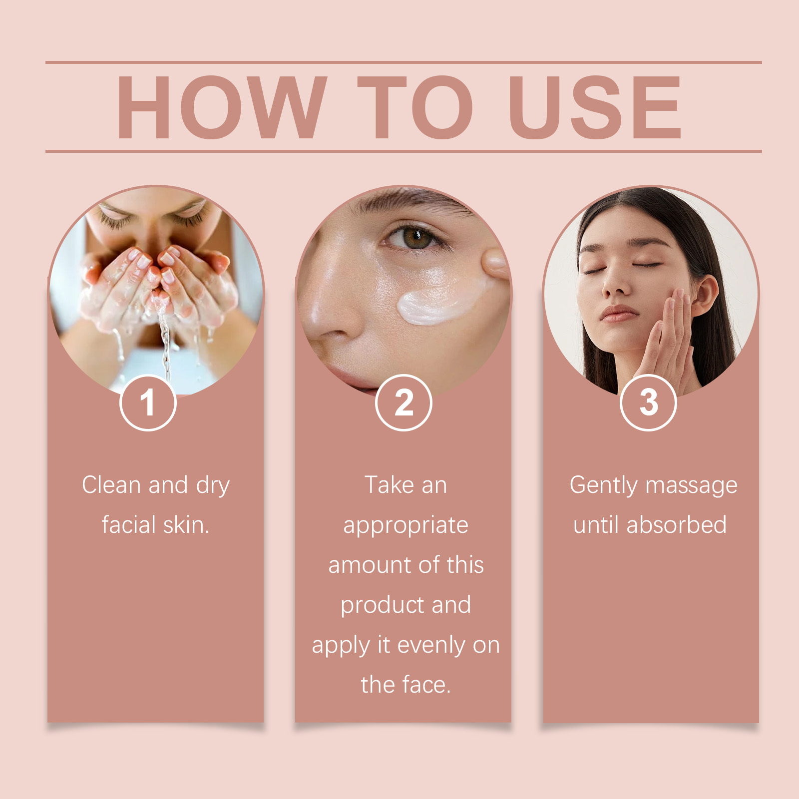 Our facial cream contains glycerin, collagen and hyaluronic acid. It locks in moisture for a long time, moisturizing every inch of the skin. Reduces fine lines and wrinkles for smoother skin. Its application method is simple: 1. Clean and dry facial skin. 2. Apply appropriate amount to face evenly. 3. Gently massage until absorbed. Supplement skin nutrition, improve skin elasticity, reduce wrinkles and fine lines. Nourish and repair the skin, smooth the texture, make the skin more delicate and smooth.