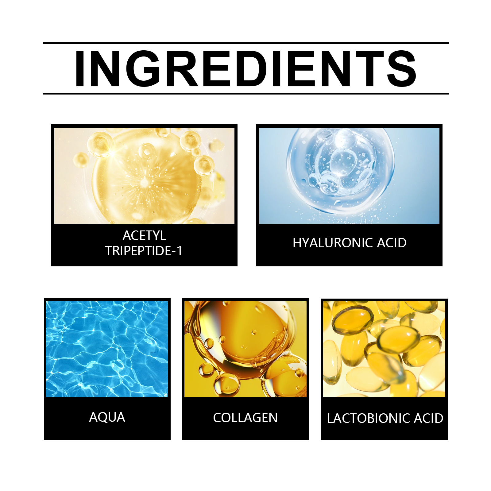 Our facial essence is carefully formulated with hyaluronic acid, collagen and acetyl tripeptide-1. Designed specifically to help even out skin tone and reduce dark spots. The usage method is extremely convenient: 1. Completely cleanses the facial skin and dries it. 2. Apply an appropriate amount of this product evenly to the facial skin area. 3. Gentle massage promotes better absorption. And it can increase the production of collagen, enhance skin elasticity and firmness.
