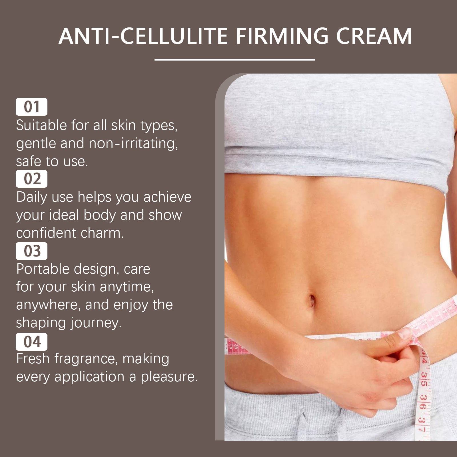 Our body cream contains peppermint extract and glycerin. It improves relaxation and restores firmness and elasticity. The way to use it is simple: clean the skin and keep it dry. Apply appropriate amount of this product to the skin of thighs, arms, abdomen and other parts of the body. Gently massage until absorbed. It also detoxifies and helps shape beautiful curves.