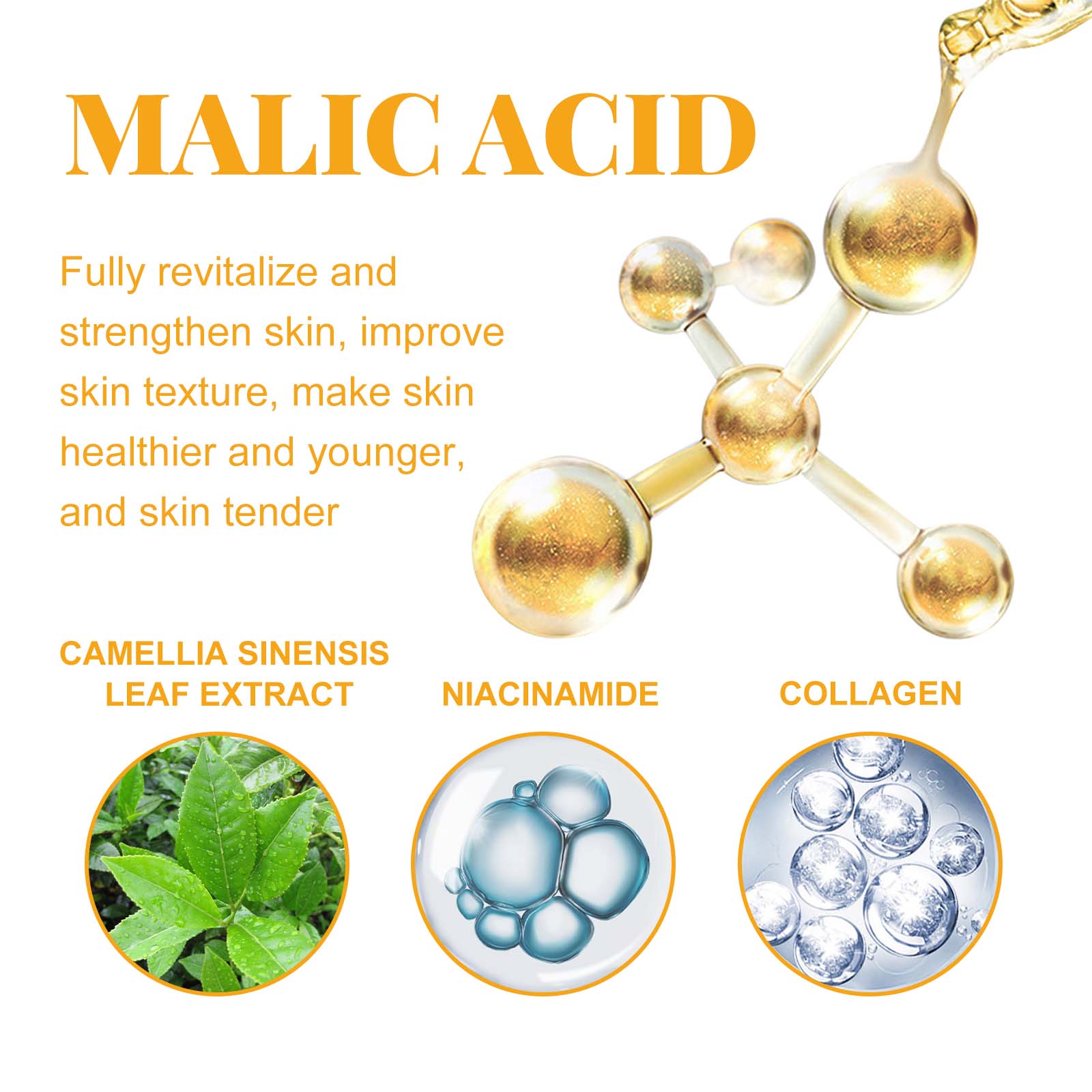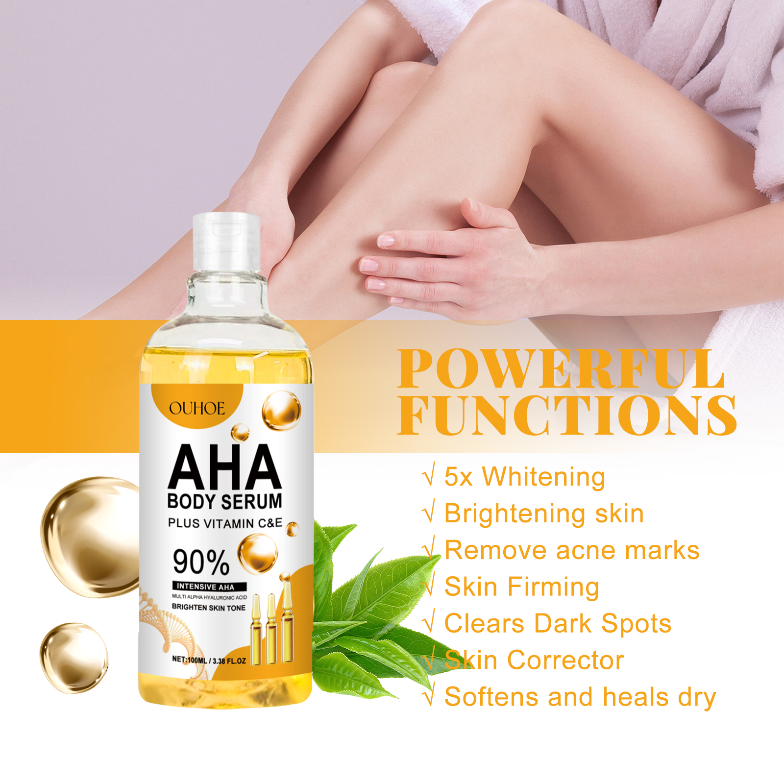 Our hydroxy Facial Body serum contains tea extract, nicotinamide. It can penetrate dry skin, deeply moisturize and effectively soften rough skin, reduce dry and tight feeling, restore skin soft and moist, so that you have healthy and soft skin. Its use is simple: 1. Clean and dry skin on the face and body. 2. Apply proper amount of serum to skin evenly. 3. Gently massage until absorbed. And can go deep into the bottom of the muscle to repel dullness, fade stains, brighten the skin, make the skin glow from the inside out, bring you a pearl-like luster.