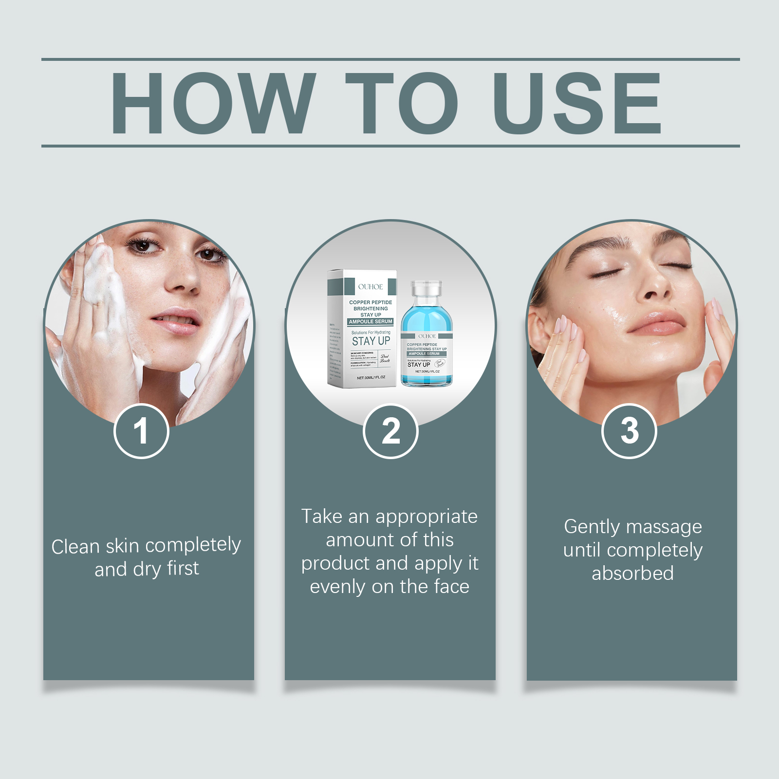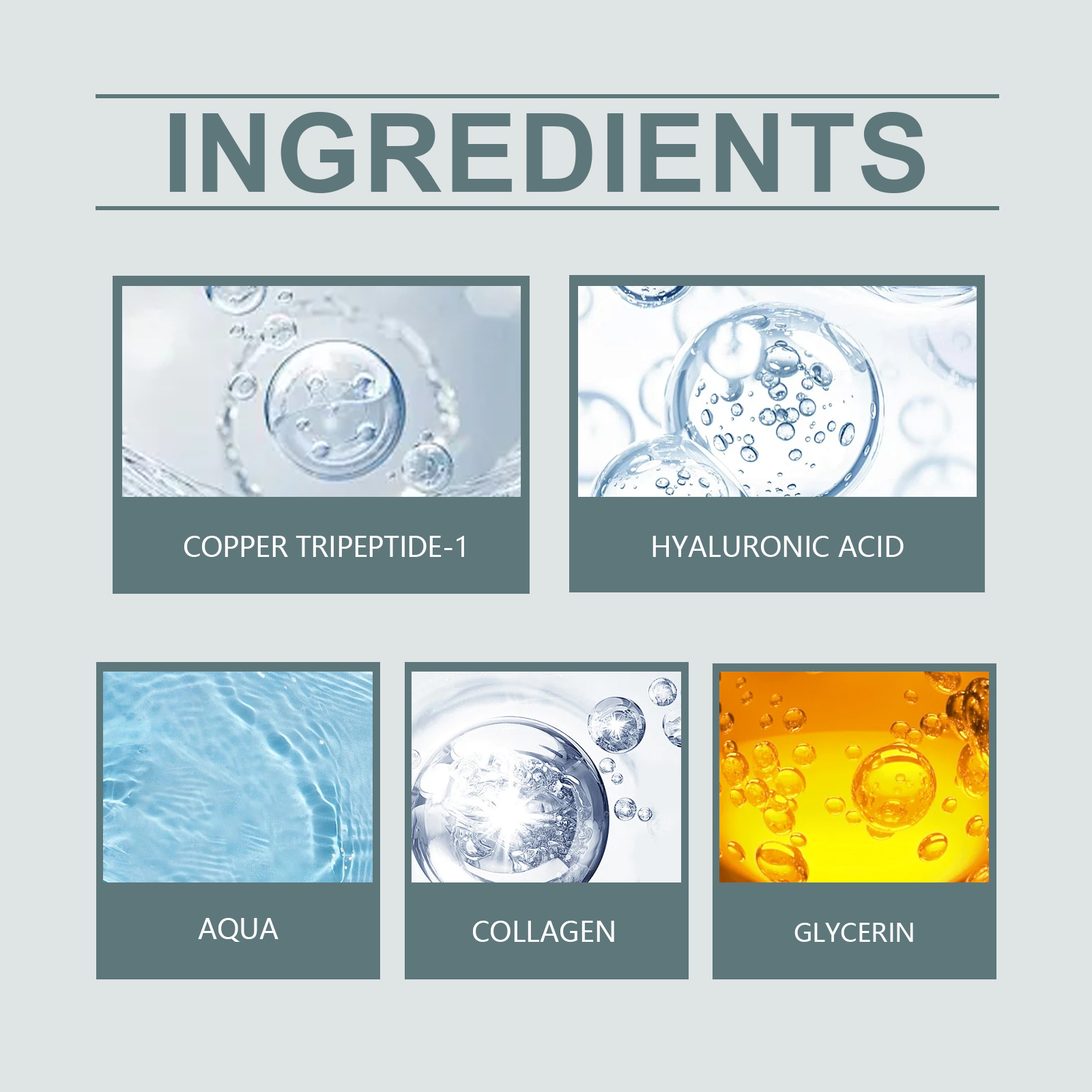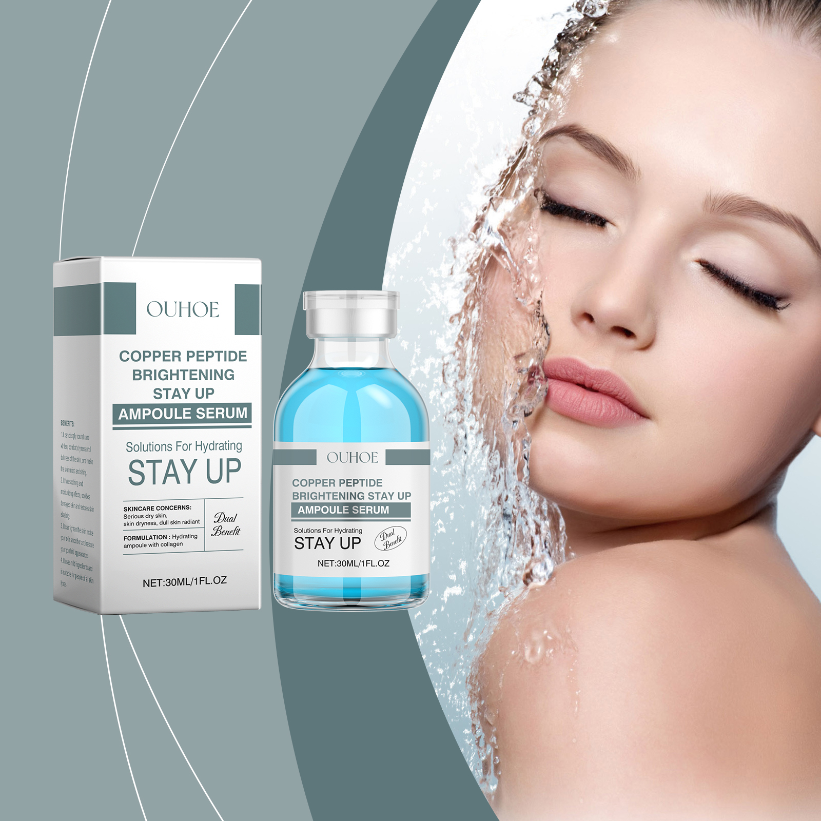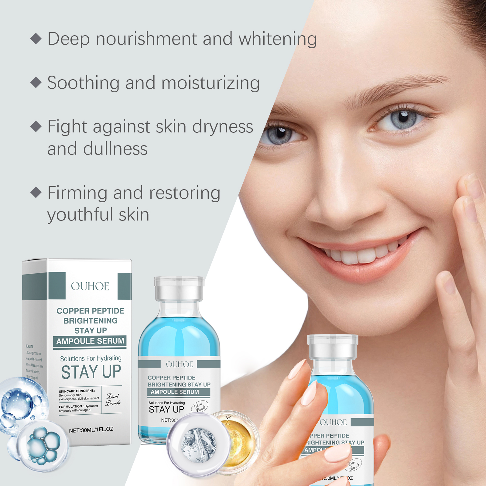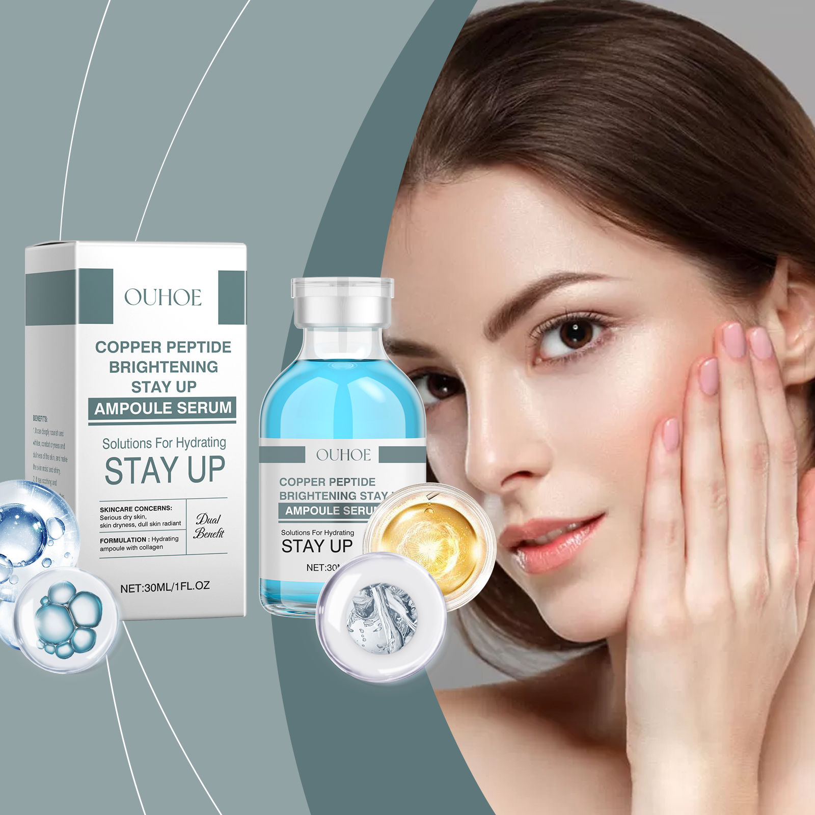 Our hyaluronic acid hydrating ampoule contains tripeptide copper-1, hyaluronic acid, collagen. It can repair damaged cells and reduce fine lines and wrinkles. Strong moisturizing, deep moisturizing skin. Improves skin elasticity and firmness. Its application method is very simple: 1. Thoroughly clean the skin, dry it first; 2. Apply appropriate amount of the product evenly on the face; 3. Gently massage until fully absorbed. Hyaluronic acid hydrating amps contain a high concentration of hyaluronic acid, quickly replenish skin moisture. Long-lasting moisture retention leaves skin hydrated throughout the day.