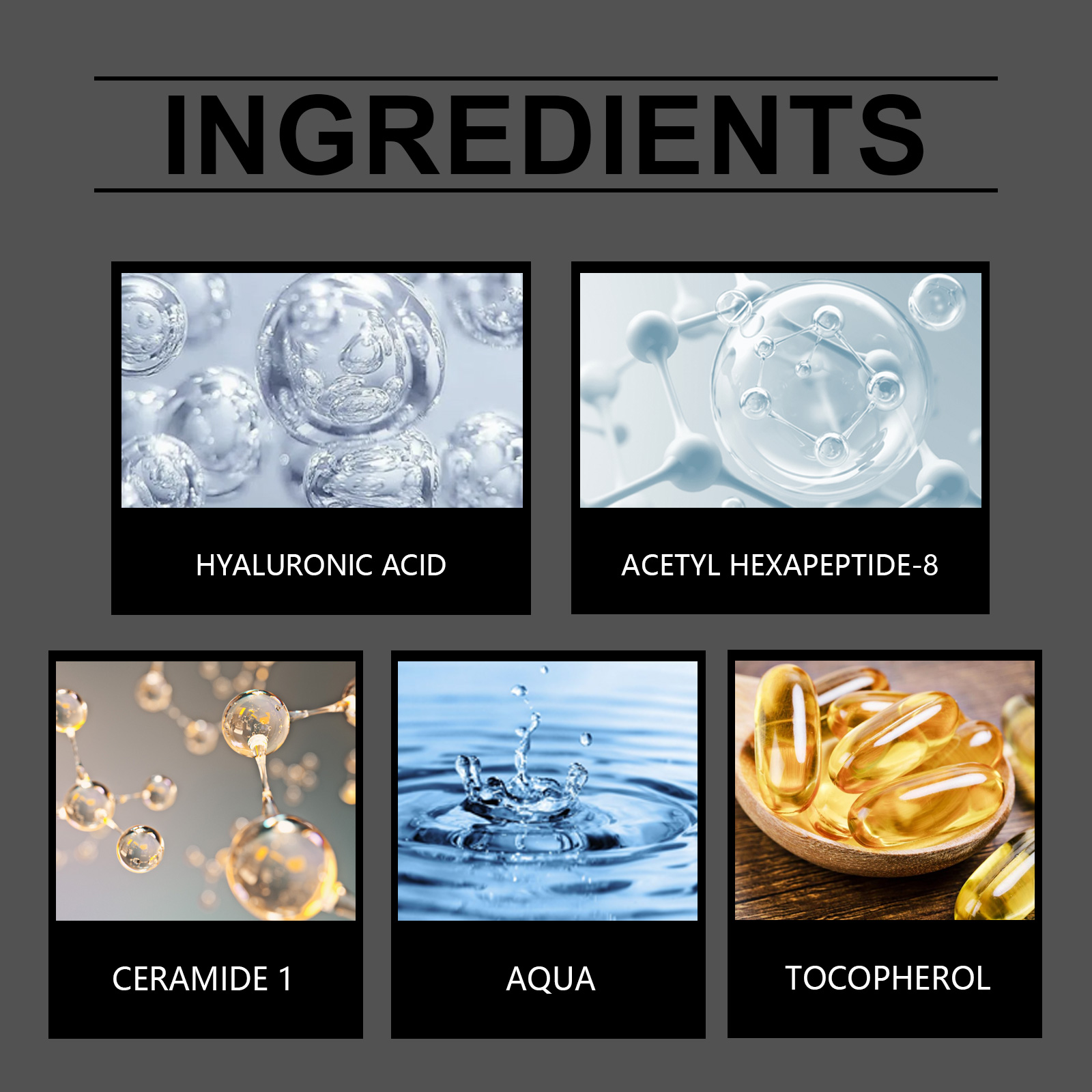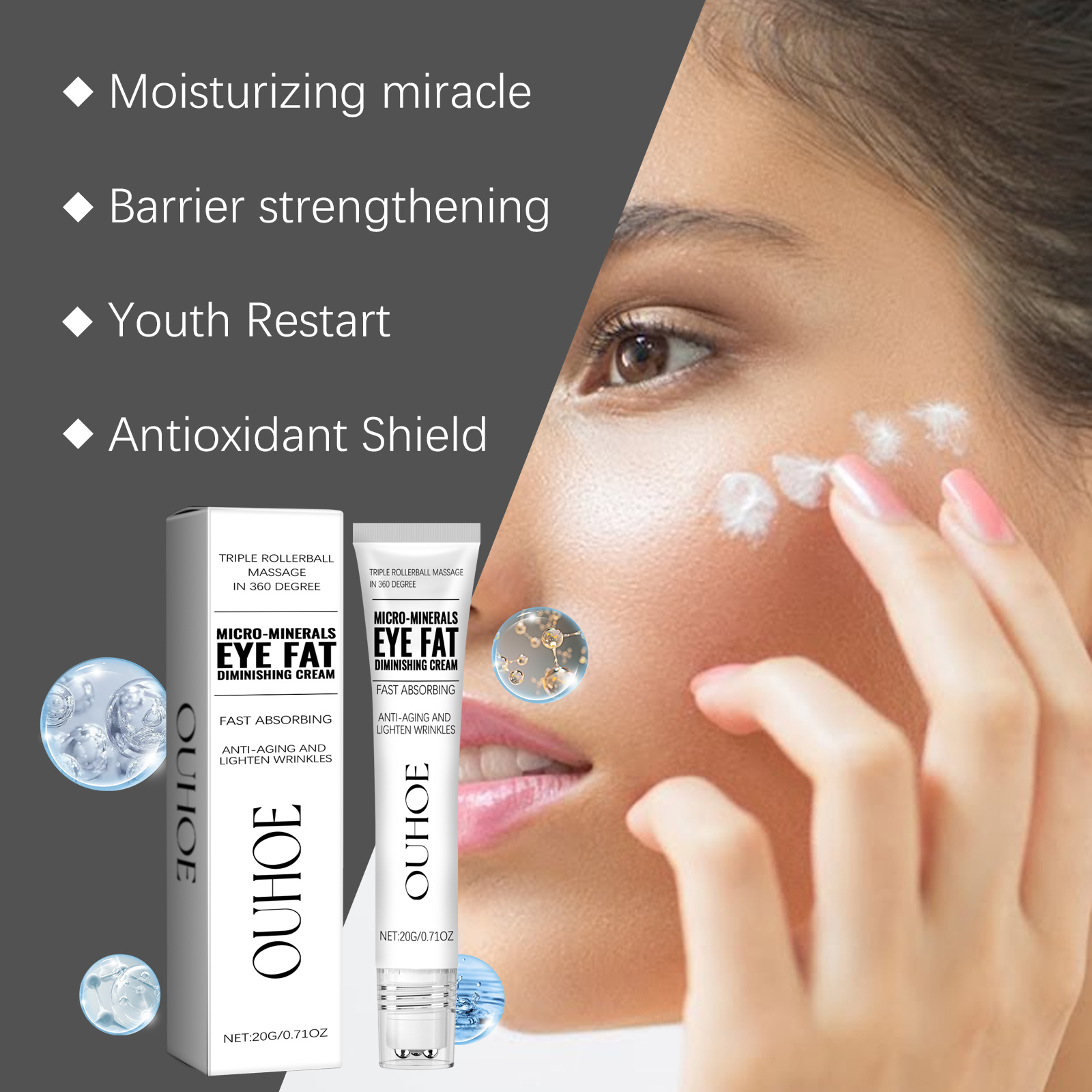 Our Micro-Minerals Eye Fat Diminishing Cream contains Hyaluronic Acid, Ceramide 1, Acetyl Hexapeptide-8. It can tighten and lift, improve sagging and lift eye contour, deeply nourish the eye area, lock moisture, moisturize, reduce bags under the eyes and reduce wrinkles. Its application method is very simple: clean and dry the skin around the eyes, apply appropriate amount of eye cream evenly on the skin around the eyes, gently massage until absorbed. It can moisturize for a long time, moisturize all day, reduce dry lines, keep skin soft and tender, and make skin silky and delicate and radiant every time you use it.